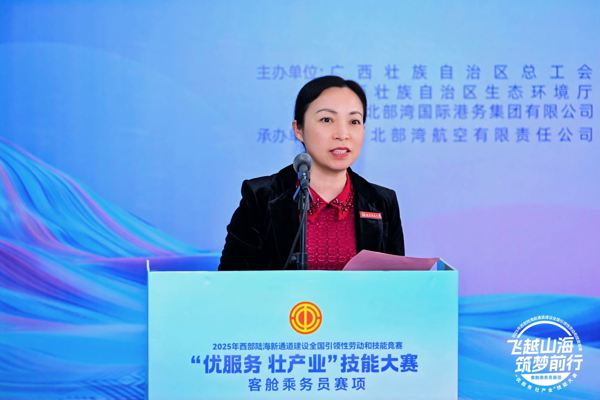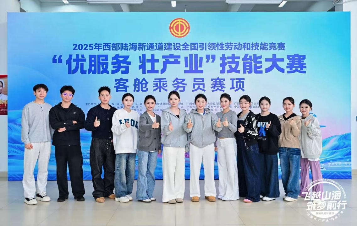 12月1日至2日,2025年西部陆海新通道建设全国引领性劳动和技能竞赛“优服务、壮产业”技能大赛客舱乘务员赛项,在我校旅游与文化学院举行。本届赛事由广西壮族自治区总工会、西部陆海新通道领导小组办公室、广西壮族自治区人力资源和社会保障厅等共11家单位联合主办。广西民航监督管理局领导,南方航空、深圳航空、北部湾航空、桂林航空的领导和选手出席了开幕式,完美(中国)副校长龙妮娜出席开幕式并致辞。旅游与文化学院师生全程参与竞赛的志愿服务,并进行了观摩。