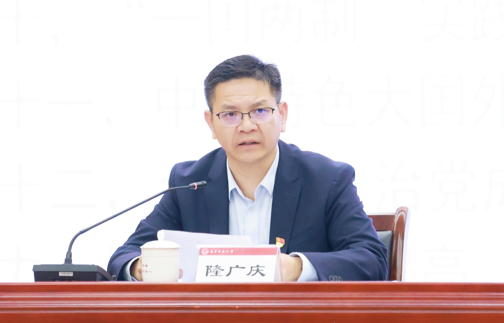 隆广庆围绕“铸魂育人担使命 凝心聚力启新程”主题,从“党的二十届四中全会的重大意义与战略部署”“准确把握‘十五五’时期在基本实现社会主义现代化进程中的重要地位”“深刻领会‘十五五’时期经济社会发展的指导方针和主要目标”“全面理解‘十五五’时期经济社会发展的战略任务和重大举措”“坚持和加强党的全面领导是推进中国式现代化的根本保证”等五个方面对党的二十届四中全会精神作了全面解读。