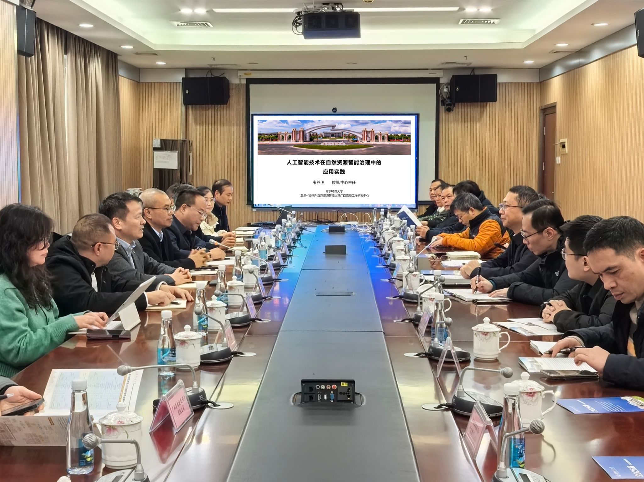 国内合作处、科研处、学生工作处等部门相关同志和“卫星+”空间AI自然资源智能治理广西高校工程研究中心成员陪同调研走访。