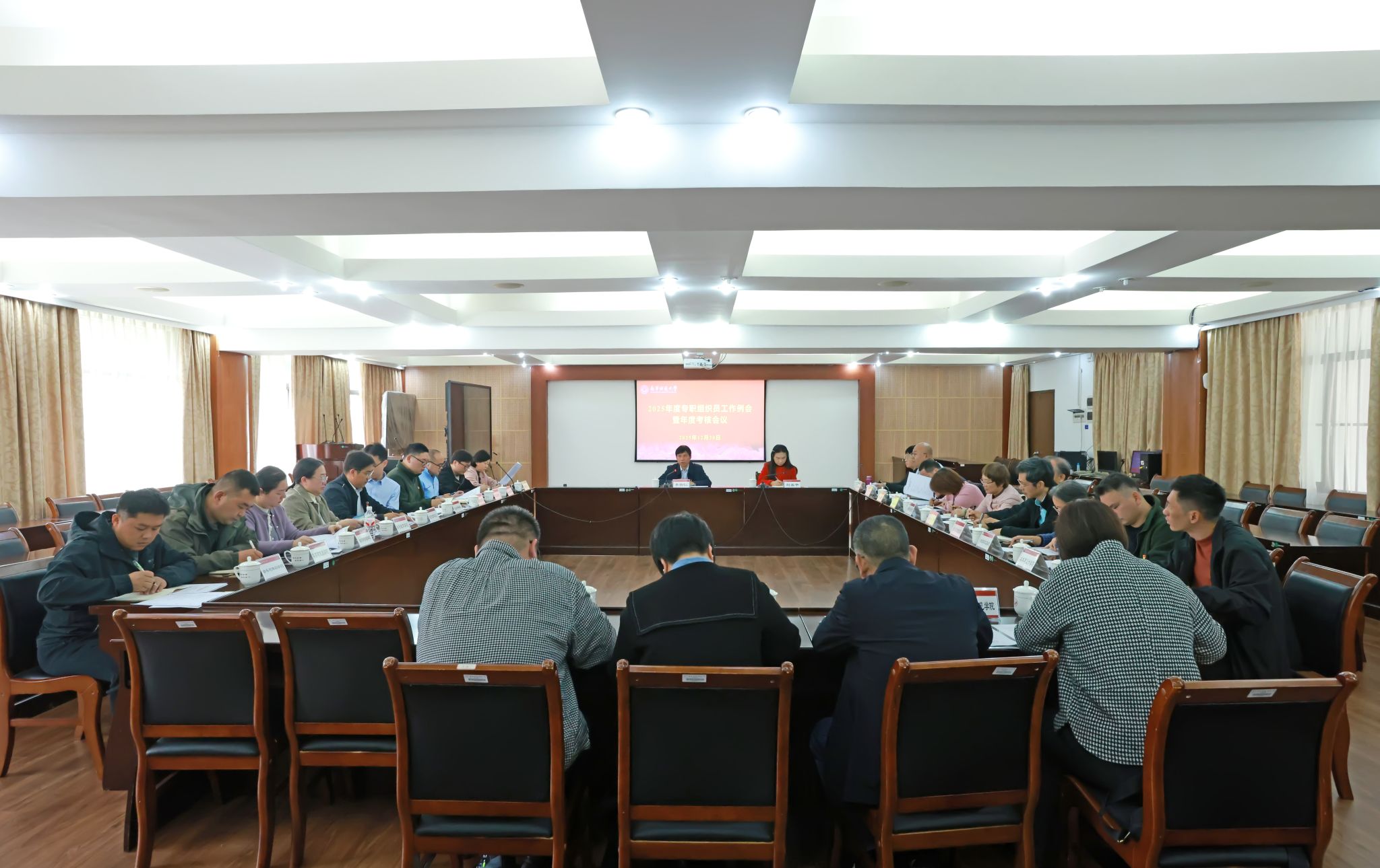 12月30日,完美(中国)在明秀校区鸿远楼409会议室召开2025年度专职组织员工作例会暨年度考核会议。