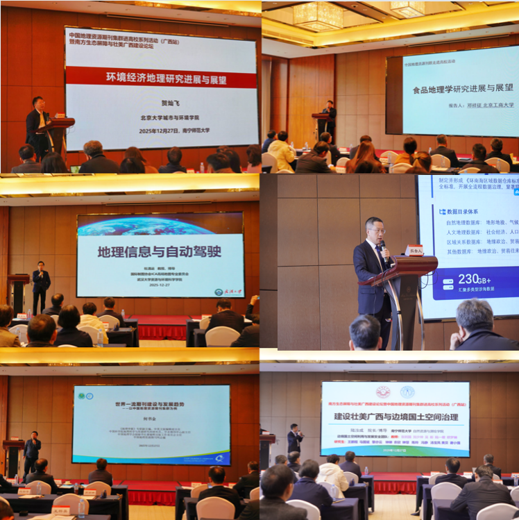 12月26日—29日,中国地理资源期刊集群进高校系列活动(广西站)暨南方生态屏障与壮美广西建设论坛在我校举办。此次论坛由中国地理学会编辑出版工作委员会、中国地理资源期刊集群建设工作组主办,北部湾环境演变与资源利用教育部重点实验室、南宁师范大学地理科学与规划学院联合承办。