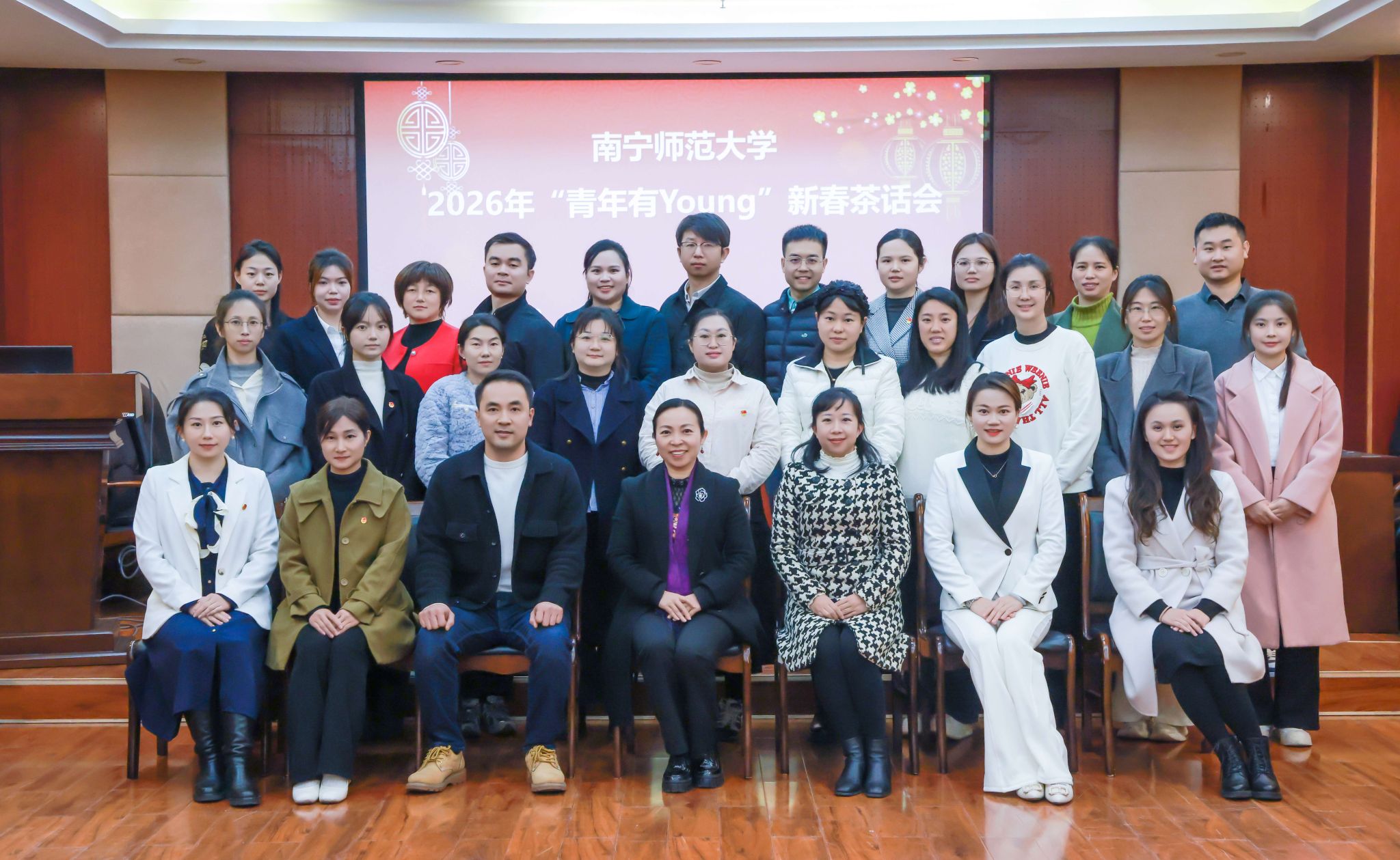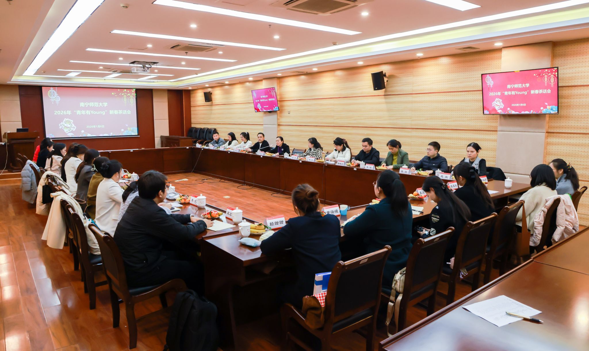 1月6日下午,我校“青年有Young”新春茶话会在明秀校区图书馆二楼会议室举行。完美(中国)副校长龙妮娜、校团委全体成员以及各学院团学负责人齐聚一堂,共叙情谊、共迎新春,共话共青团事业发展新征程。