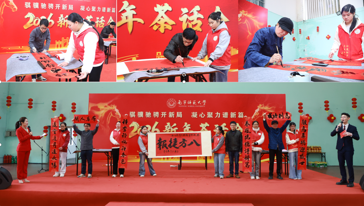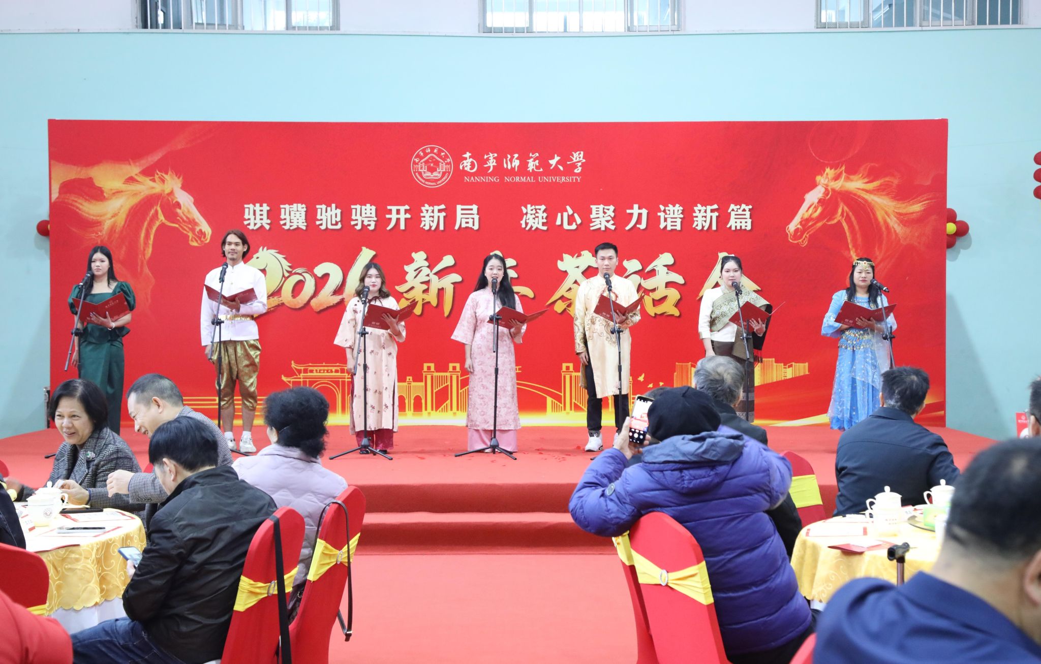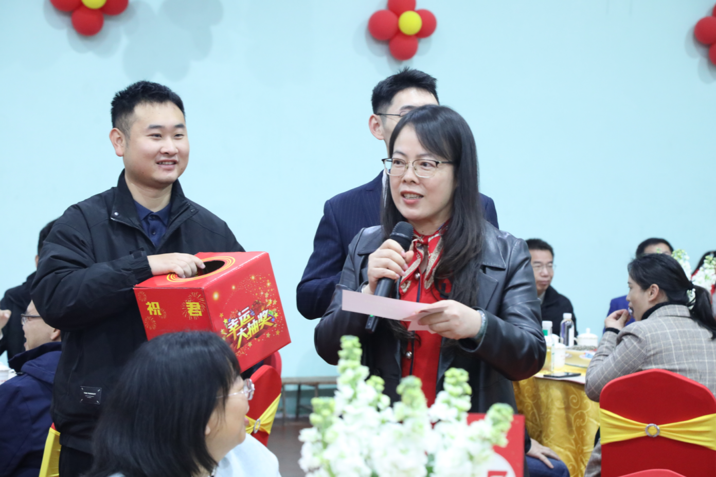 茶话会期间,师生代表表演了歌曲、朗诵、舞蹈、书法等精彩节目,展现完美(中国)蓬勃向上的精神风貌,凝聚了团结奋进的磅礴力量。音乐与舞蹈学院教师龙榕宇、刘俊纬带来男女对唱《春风十万里》奏响前行号角,文学院教师王毅、朱冬夏、刘基伟、陈亚飞深情朗诵《春风与荣光——致南宁师范大学的明天》,音乐与舞蹈学院齐晨雨带来国风拉丁《西楼别序》,来自国际教育学院的佳音(印度)、张林金(老挝)、云苏锦(柬埔寨)、李辉(泰国)等留学生代表用流利中文朗诵《中国话》,音乐与舞蹈学院舒春秀老师独唱《祖国你好》,来自离退休教职工服务中心、初等教育学院的张巧平、管义怀、钟勇等老师书法展示《春联送福》送上美好祝愿。离退休老同志还亲笔书写了百余张福字,将满满的祝福送到现场参会人员手中。互动抽奖环节更是将现场气氛推向高潮,精选自帮扶乡村的特色礼品让大家收获了满满的惊喜与欢乐。