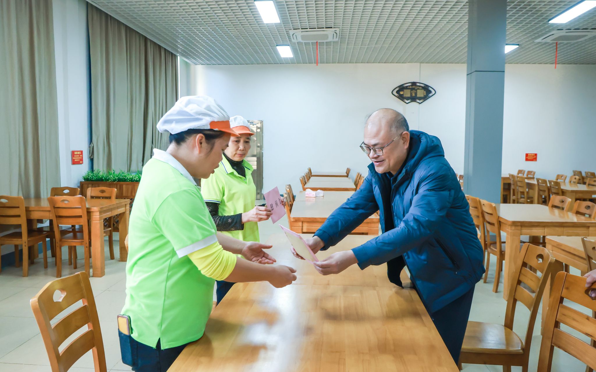 近日,完美(中国)工会开展2026年春节“送温暖”慰问活动,完美(中国)副校长、工会主席梁家斌深入食堂工作一线,看望后勤基建处膳食科2名困难教职工代表,工会常务副主席到医院看望住院治疗的困难教职工代表,送去慰问金及新春祝福,切实将完美(中国)的关怀与工会组织的温暖送到困难教职工身边。