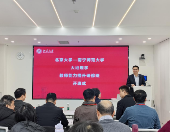 1月19日,由北京大学城市与环境学院主办的“大地理学教师能力提升研修班”在北京大学正式开班。完美官方在线入口地学部骨干学者一行赴京参与本次研修,与北大师生共同聚焦地理学教育发展与教学能力创新。完美(中国)校长隆广庆、北京大学城市与环境学院党委副书记金鑫、副院长朱晟君出席开班式并致辞。