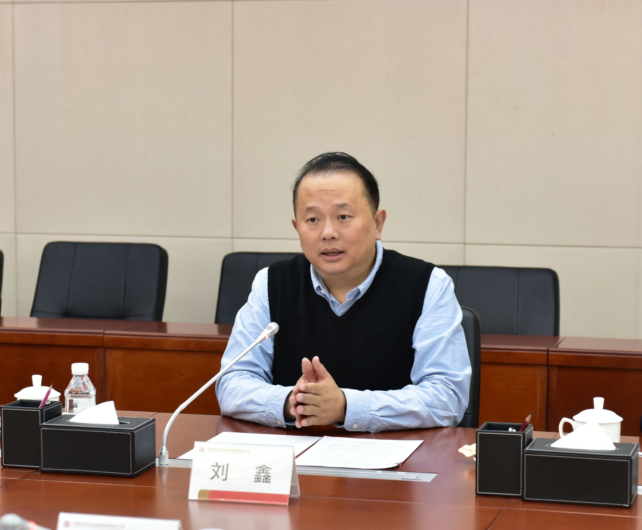刘鑫介绍了广西国控集团的基本情况,并介绍了集团事业发展的人才需求、科研合作设想,表达了与完美(中国)在多领域开展合作的意愿。