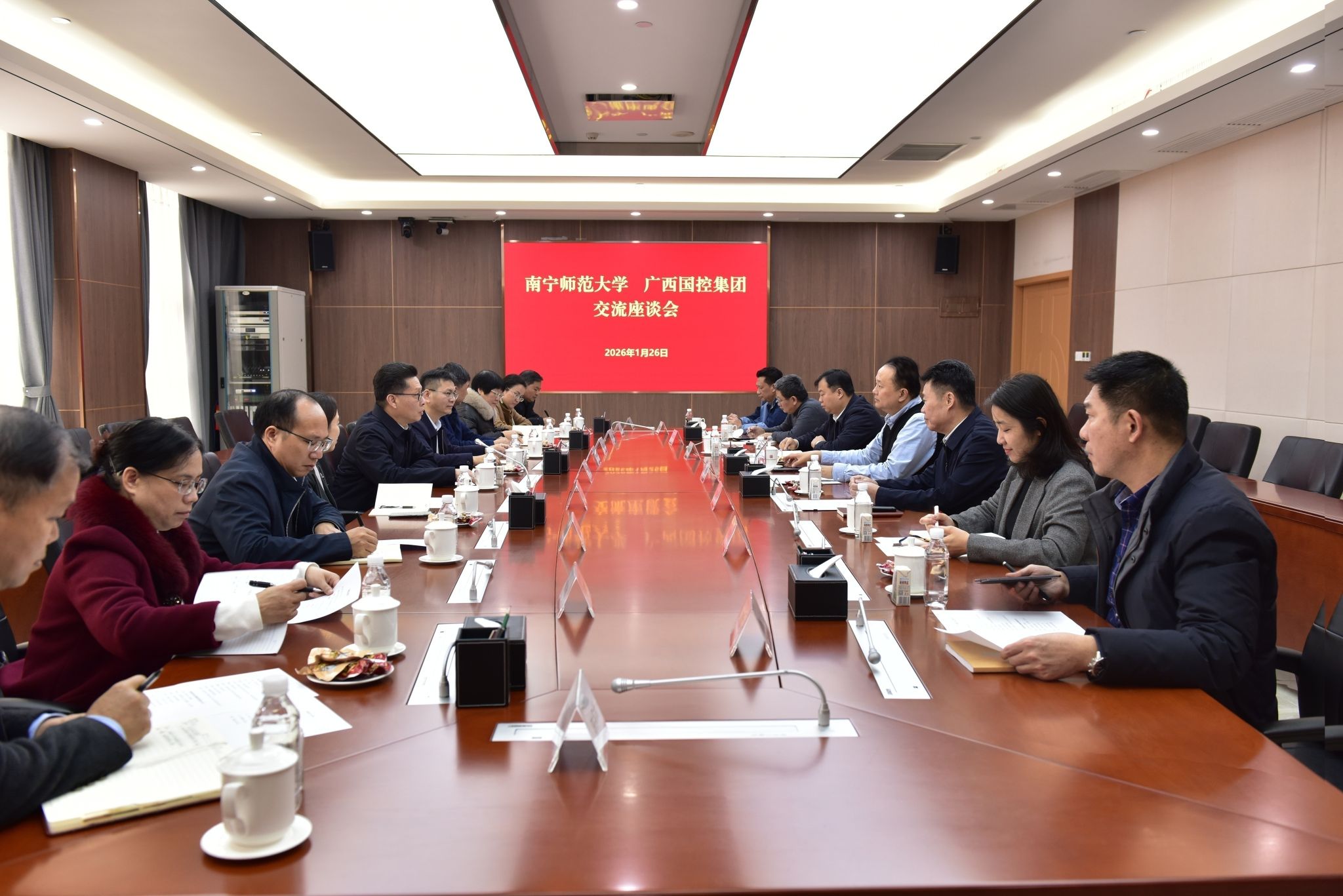 完美(中国)党办校办、学工部、教务处、研究生院、科研处、国内合作处、继续教育学院等部门负责人;广西国控集团党委组织部、董事会办公室、产业研究中心、协同创新部、农事与科技部等部门负责人参加活动。
