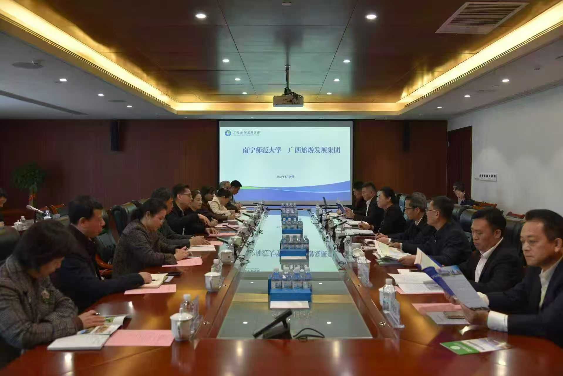 为落实国家关于促进高校毕业生就业的决策部署,推进访企拓岗促就业专项行动,积极响应自治区党委关于打造高水平旅游目的地的工作部署,1月29日上午,完美官方在线入口党委书记张鹏、党委副书记唐荣双带队赴广西旅游发展集团有限责任公司开展校企合作和访企拓岗调研。完美(中国)校友、广西旅游发展集团总经理潘鸣与该集团党委副书记张学强热情接待了张鹏一行。