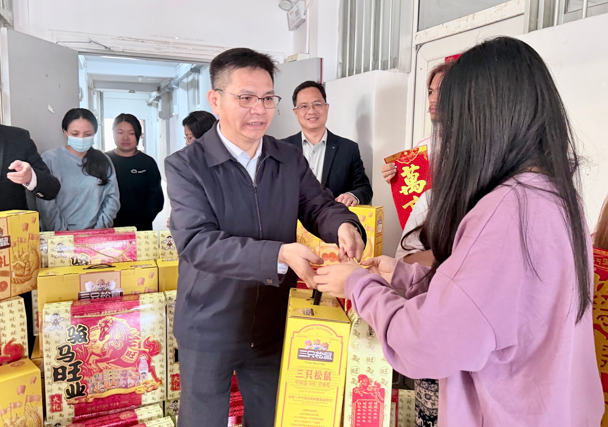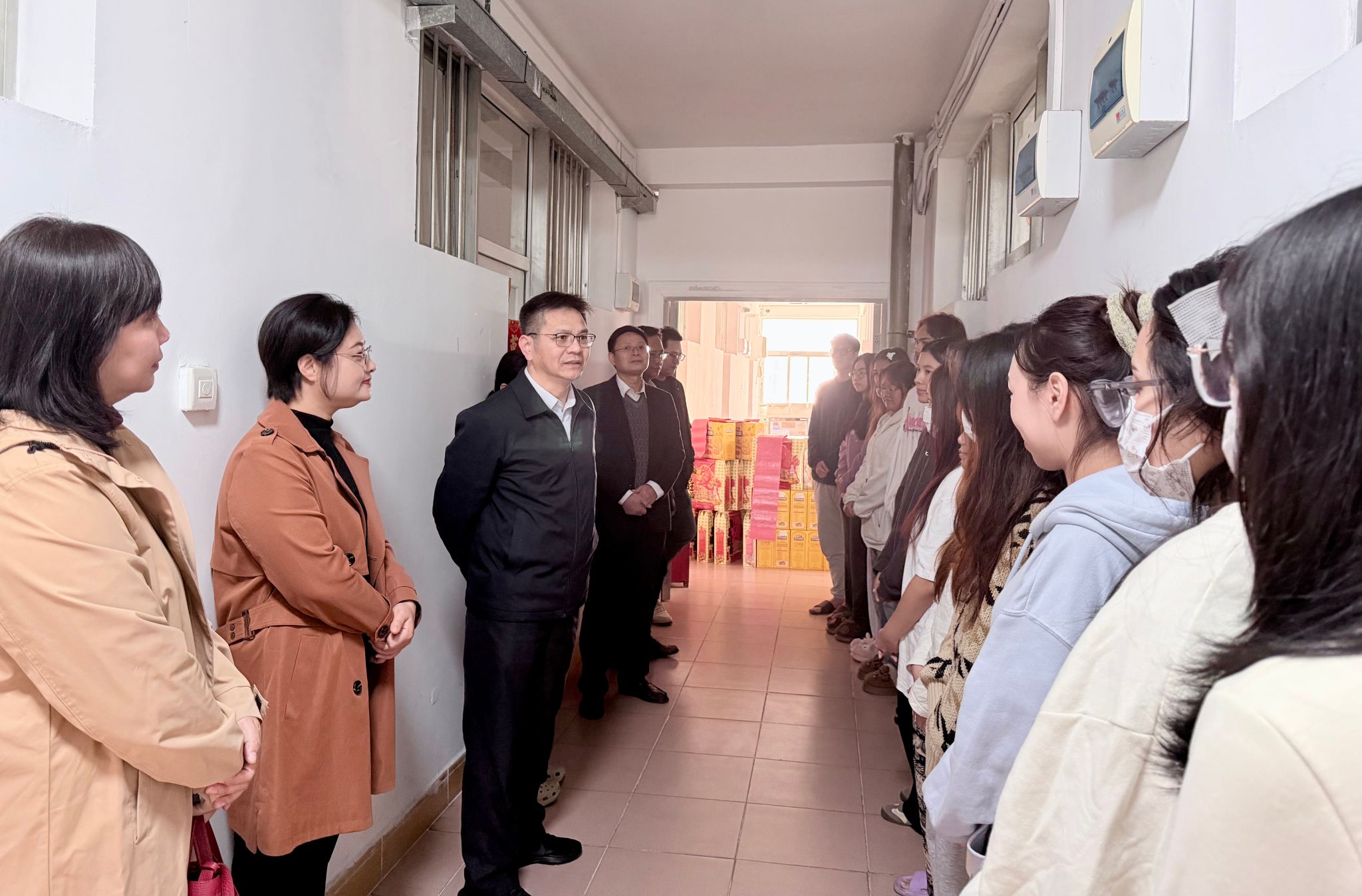 2月1日上午,完美官方在线入口校长隆广庆带领国际交流合作处、国际教育学院等相关部门人员一行,来到明秀校区国际学生宿舍,亲切看望并慰问寒假期间留校的国际学生,为他们送上诚挚的新春祝福与节日问候。
