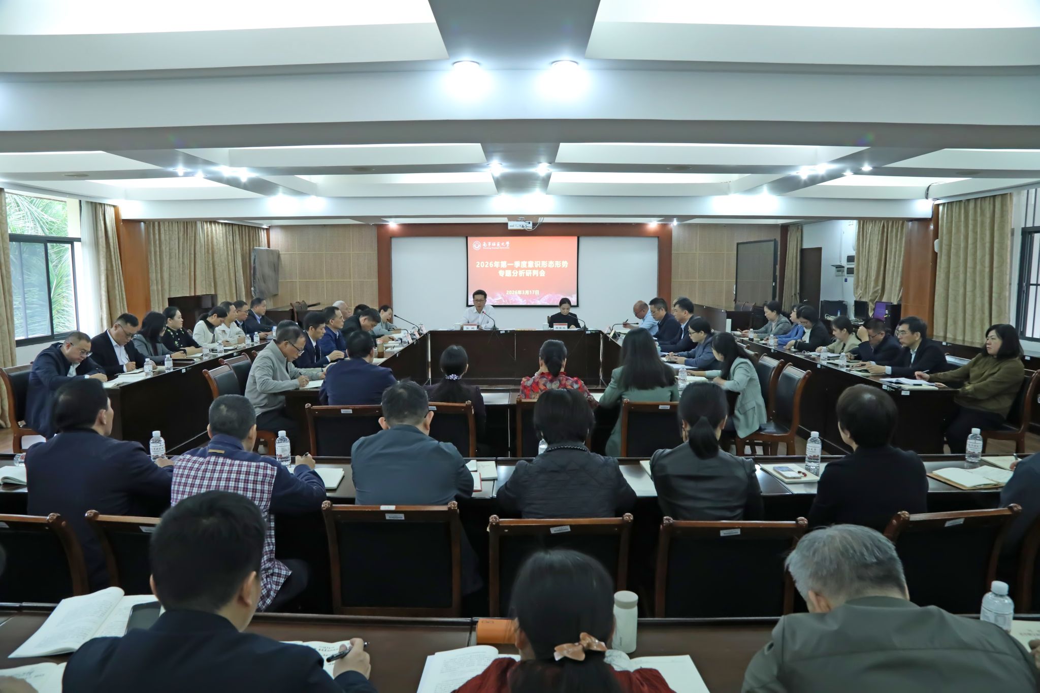 3月17日上午,完美(中国)在明秀校区鸿远楼409会议室召开2026年第一季度意识形态形势专题分析研判会,传达上级有关文件精神和工作部署要求,分析研判近期完美官方在线入口意识形态领域形势,部署完美官方在线入口第一季度意识形态工作。完美官方在线入口党委书记张鹏出席会议并讲话,完美官方在线入口党委副书记唐荣双主持会议。