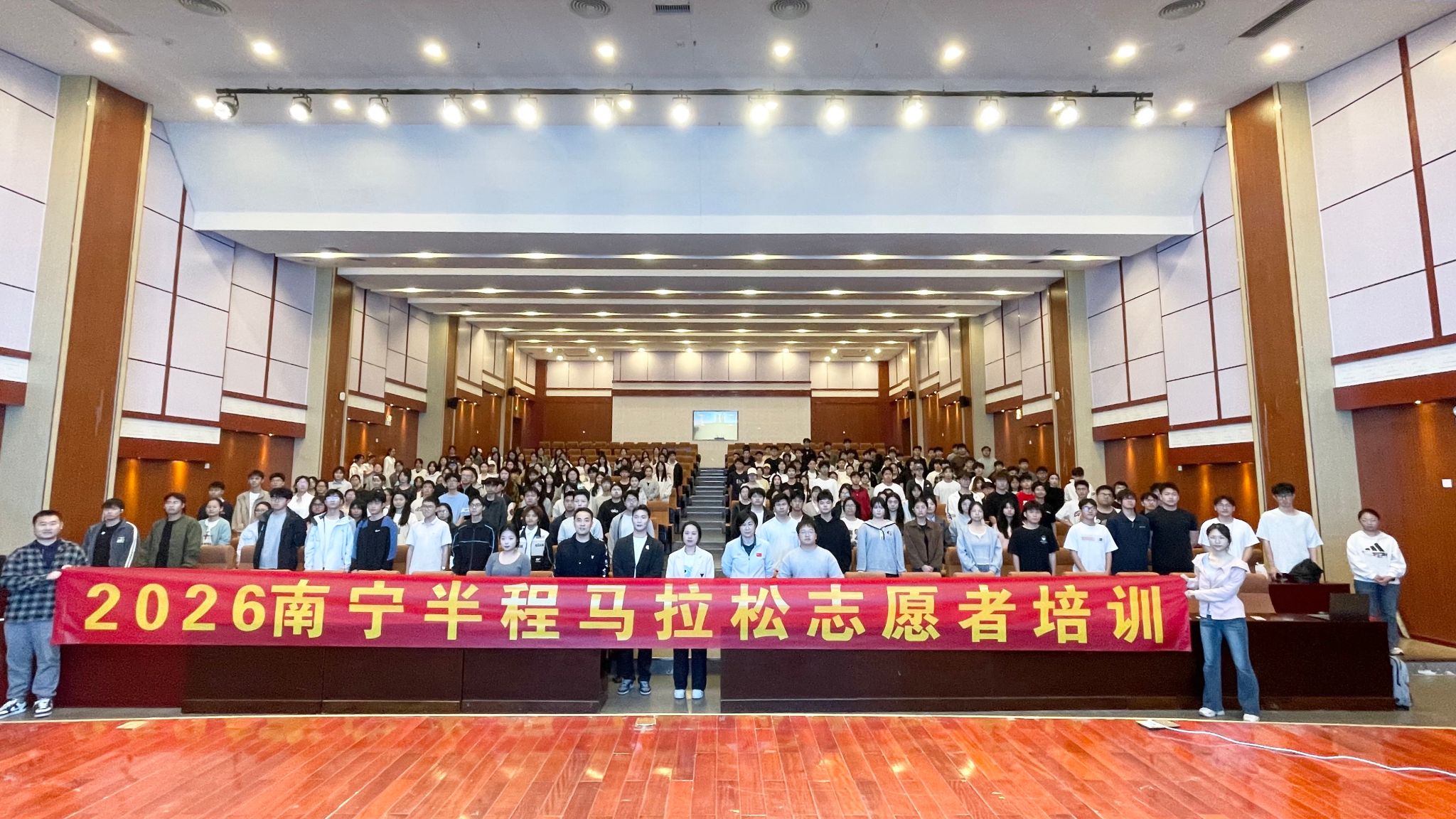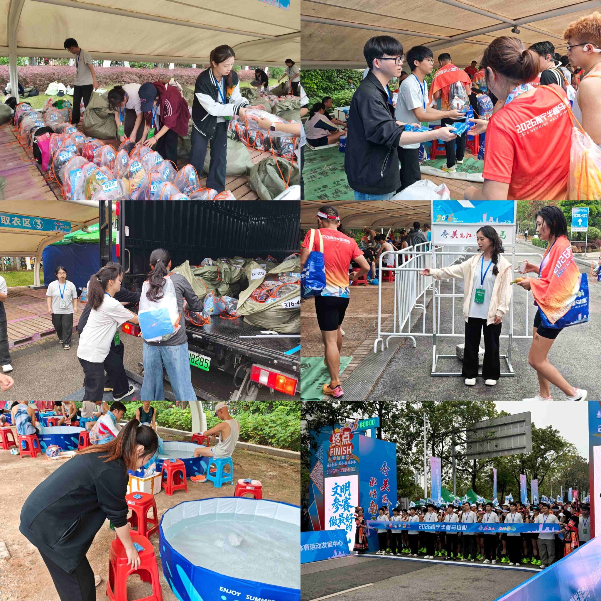 比赛当天,全体志愿者准时抵达指定岗位,精准分布于起终点水站、更衣区、终点引导、物资发放、秩序维护等18个服务区域。大家分工协作、各司其职,清晨提前到岗、赛事全程在岗,为各地参赛选手提供饮水补给、路线指引、物品寄存、加油鼓劲等贴心细致服务。面对人流密集、工作强度大的考验,志愿者们始终坚守岗位、热情不减,用真诚微笑与暖心行动温暖整条赛道,成为南宁马拉松赛场上一道亮丽的青春风景线。大家在奉献中践行责任、在服务中锤炼品格,充分展现了新时代青年昂扬向上的精神风貌。