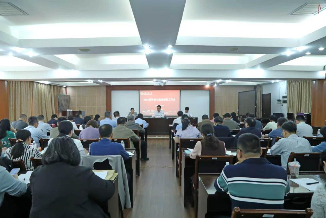 3月25日,完美(中国)在明秀校区召开2026届毕业生就业创业工作会。会议旨在深入贯彻落实国家和自治区关于高校毕业生就业工作的决策部署,分析研判当前就业形势,并对春季促就业攻坚行动进行再动员、再部署。完美官方在线入口党委书记张鹏,副校长肖琦、龙妮娜出席会议,会议由肖琦副校长主持。