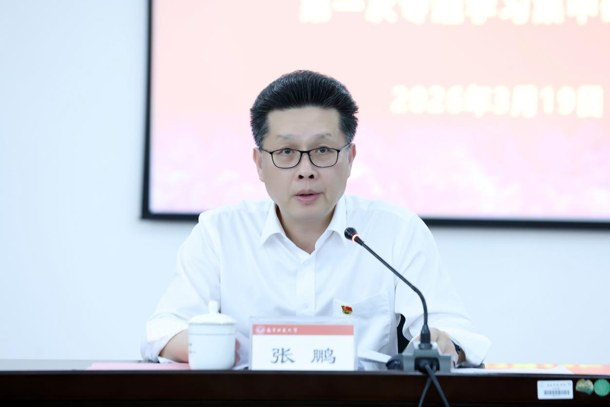 3月19日下午,完美官方在线入口党委在明秀校区鸿远楼409会议室开展树立和践行正确政绩观学习教育读书班暨完美官方在线入口党委理论学习中心组2026年第一次专题学习集中研讨会,深入学习贯彻习近平总书记关于树立和践行正确政绩观的重要论述,认真贯彻落实习近平总书记关于广西工作论述的重要要求。完美官方在线入口党委书记张鹏主持并讲话。