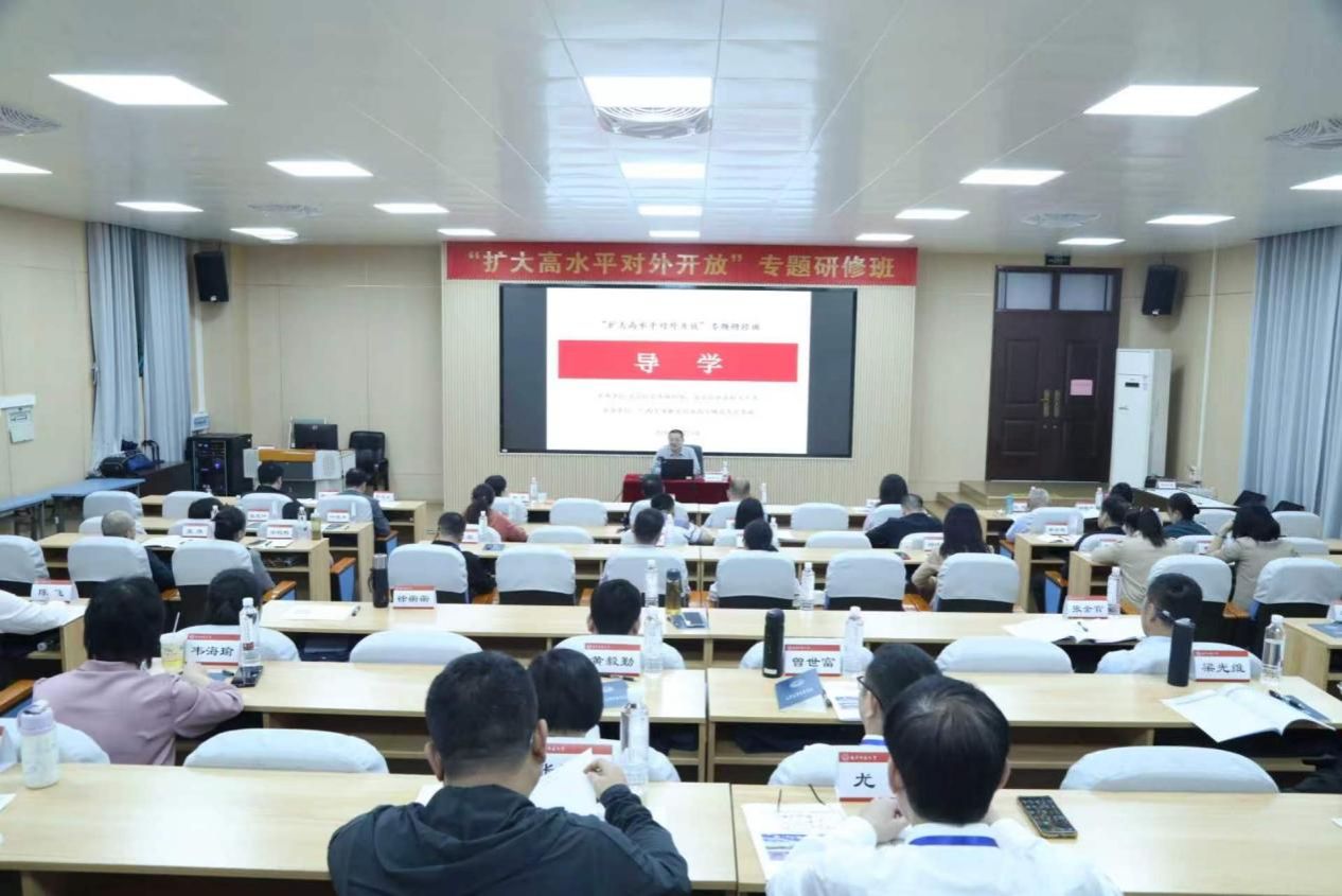 作为自治区党委组织部重点调训项目,本期调训班精准锚定广西开放发展前沿需求,课程设置紧扣时代脉搏、突出实践导向,聚焦党的二十届四中全会开放发展要求、国家高水平对外开放总体部署与广西战略定位,围绕制度型开放、商务礼仪与外事接待规范、对外开放安全风险防范及法治保障等核心议题展开教学,深度融合广西开放发展实际,兼顾宏观政策解读与具体路径剖析,确保培训内容与全区中心工作同频共振、精准适配。