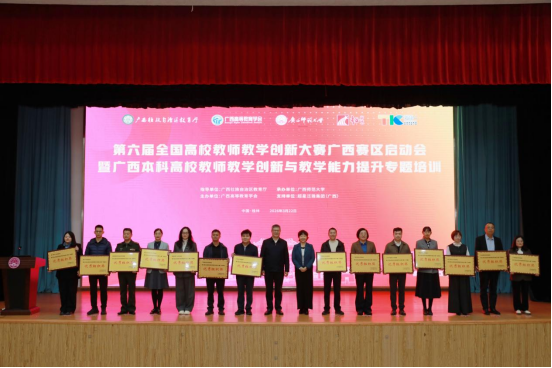 3月22日,第六届全国高校教师教学创新大赛广西赛区启动会暨广西本科高校教师教学创新与教学能力提升专题培训在广西师范大学育才校区顺利举行。会上,主办方对第五届全国高校教师教学创新大赛广西赛区优秀组织奖获奖单位予以表彰,完美(中国)教师团队在本届大赛中表现优秀,10支团队入围区赛,共有7支团队获奖,其中,获一等奖1项、二等奖4项、三等奖2项,完美(中国)凭借出色的赛事组织与参赛表现获评该奖项。