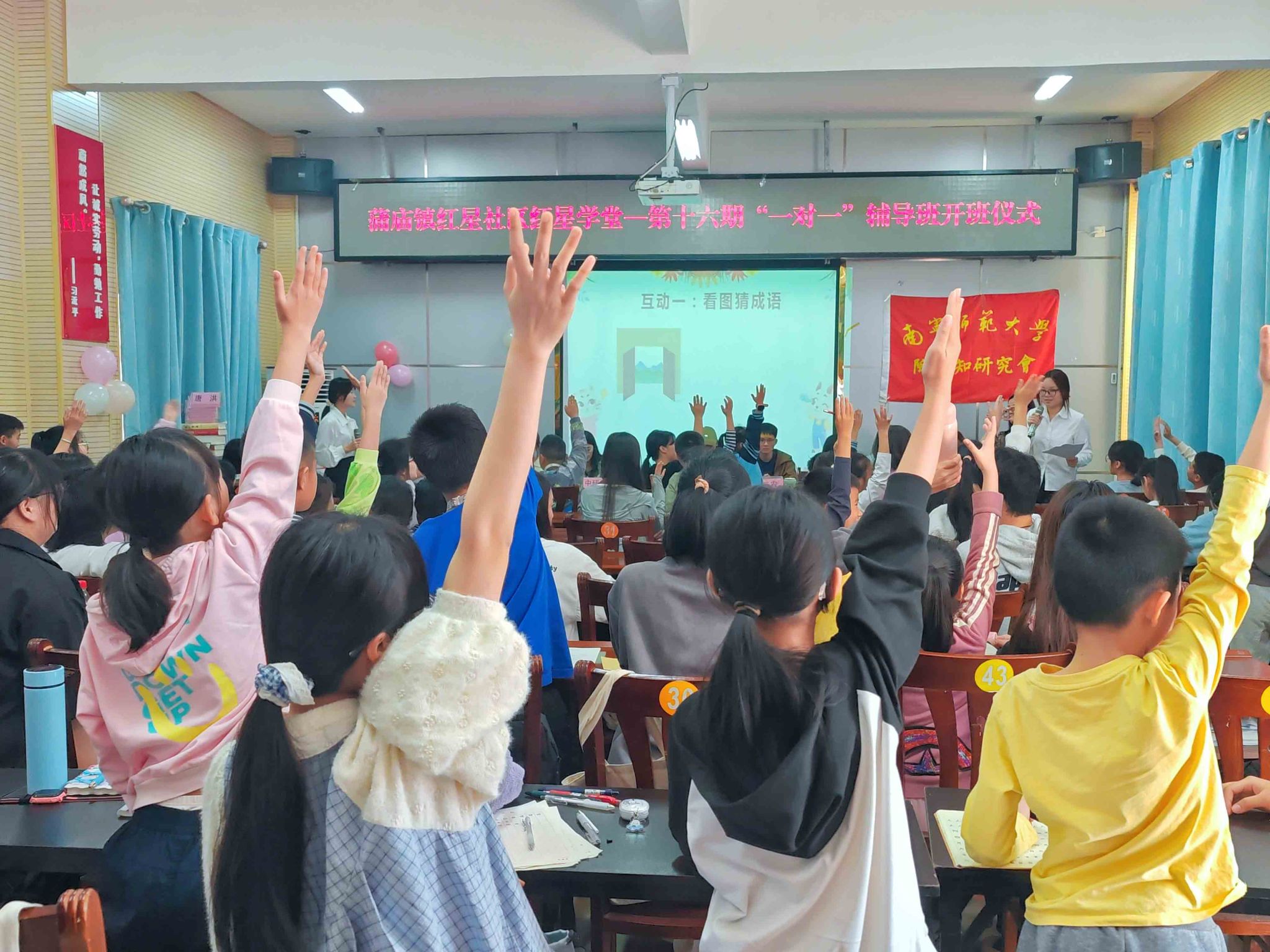 接着,红星社区负责人彭华婷上台致词,表达了对陶行知研究会与红星社区合作的感谢,并对参与辅导班的小朋友们表示了鼓励和期待。随后,辅导员们与小朋友们进行了自我介绍,使辅导员与小朋友有了初步认识。紧接着,辅导员代表梁秋芳上台致词,她表达了辅导员应具备认真负责、服从管理、兼具爱心、耐心、细心为一体的志愿服务精神,并祝愿辅导员与小朋友都能在本次活动中有所学、有所获、有所用。随后,活动进入了互动环节,小朋友们积极参与看图猜成语和连接歇后语的游戏,现场气氛活跃,小朋友们在欢声笑语中加深了对成语和歇后语的理解。为了鼓励小朋友们的积极参与,竞答正确即可获得小礼品。