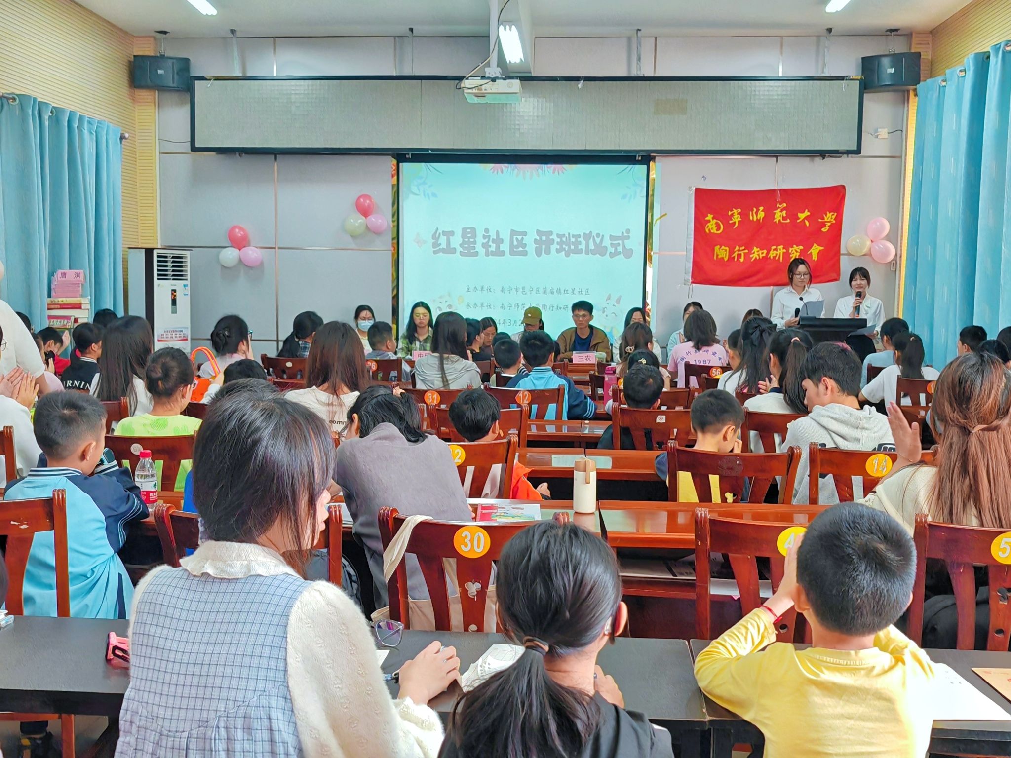 3月24日上午,我校陶行知研究会联合蒲庙镇红星社区顺利举办第十六期“1+1"义务辅导班开班仪式。本次活动由陈璐、李菁格主持,红星社区团委书记及红星社区课外辅导员责人彭华婷、各兄弟社团嘉宾、辅导员们及小朋友们共同参与。