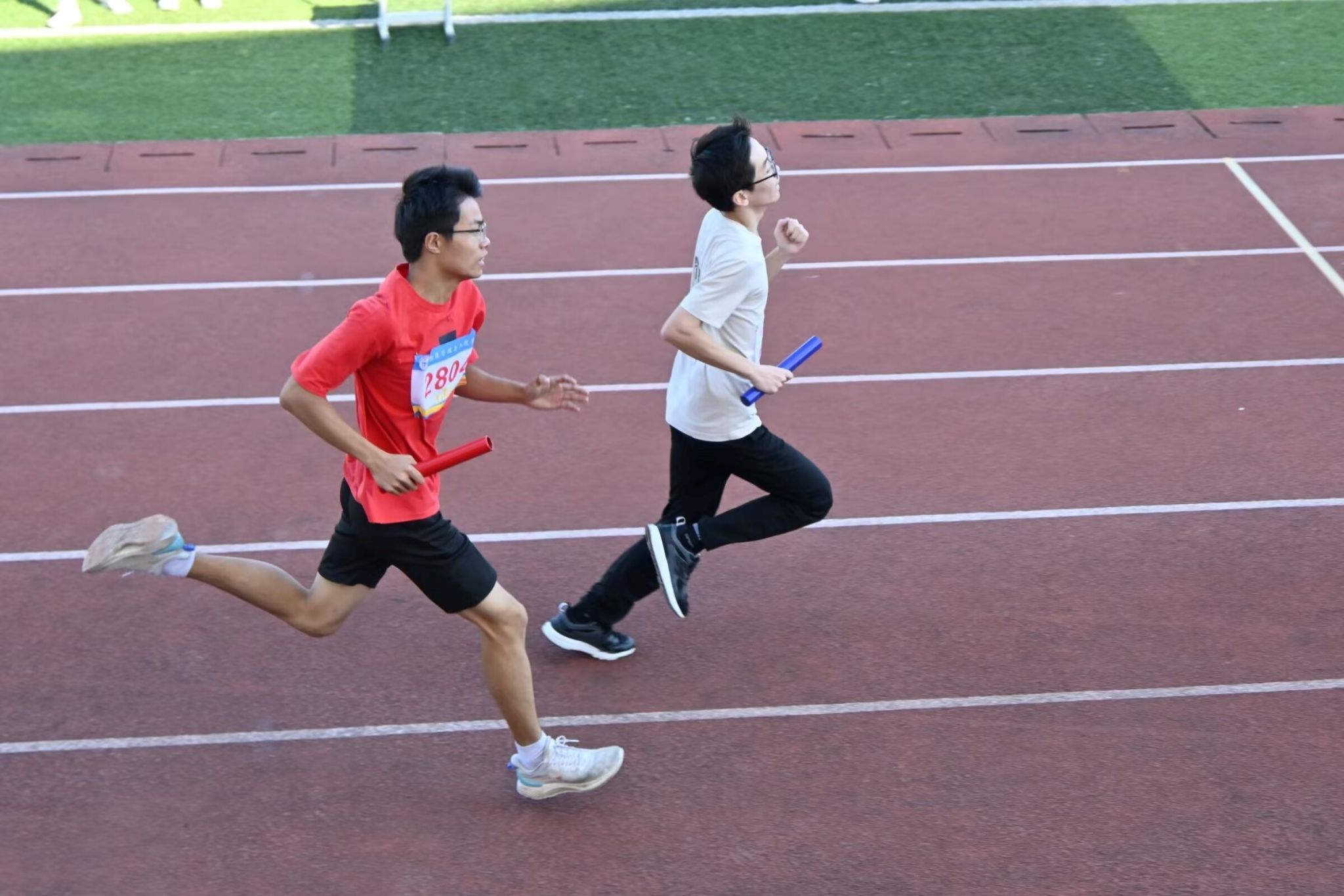 11月1日11时05分,甲组男子4×100米决赛在武鸣校区松园田径场上开展。