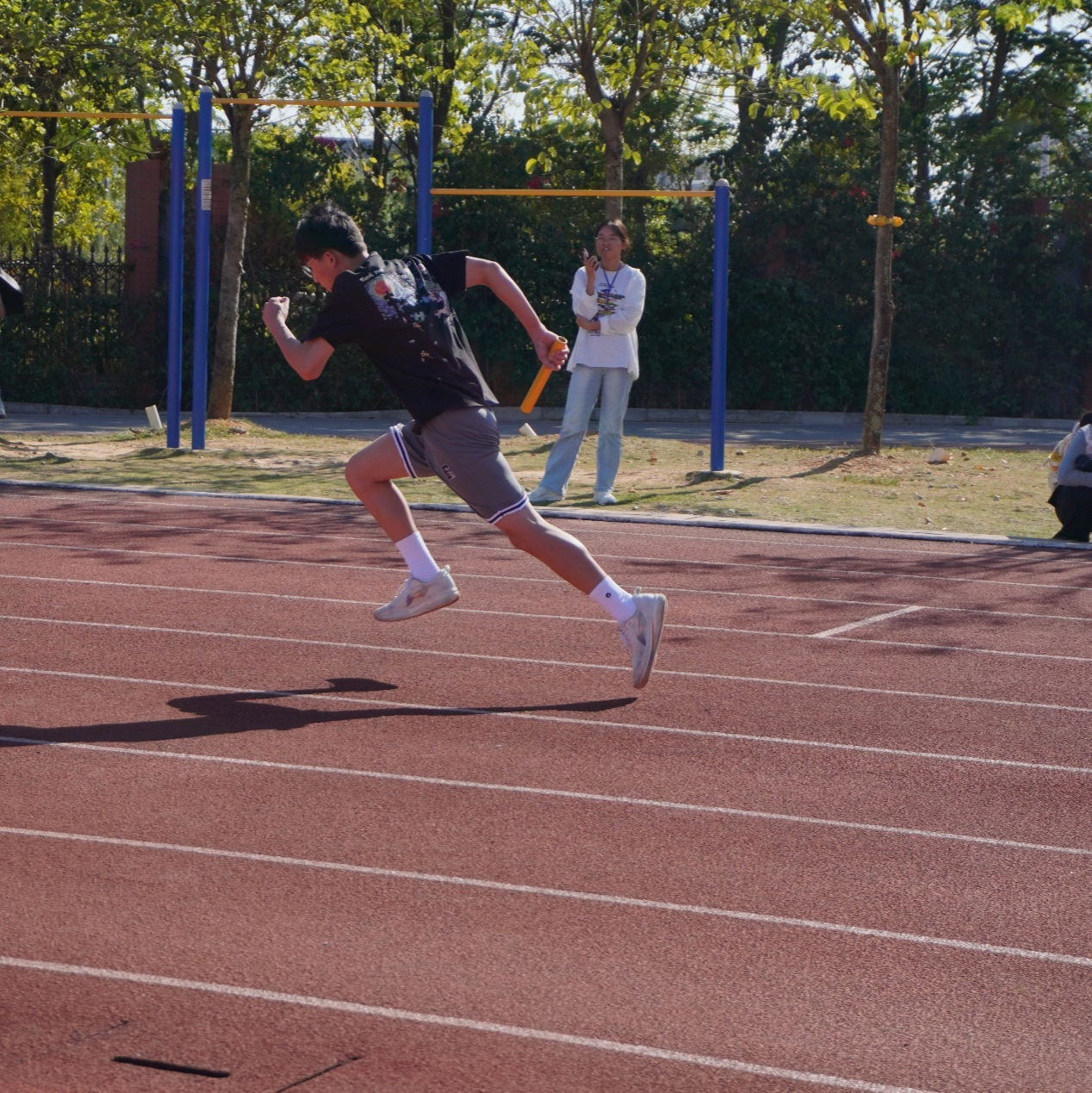 11月1日15时,我校运动会男子4×400米决赛在武鸣校区松园田径场举行。