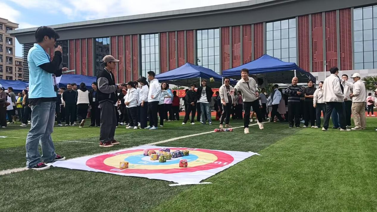 11月20日上午,我校2025年校运会教职工“沙包投掷”趣味运动在武鸣校区兰园体育场顺利进行。