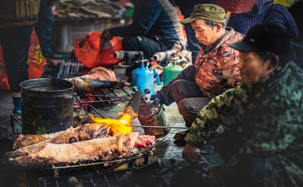烧一只腊猪脚,赶一次年前场是湘西人过年前的必备项目。烧的是来年的风调雨顺,赶得是往年的成污纳垢,一烧一赶间体现了湘西人对新年的美好祈愿。火光间体现了湘西人对新年的美好期望(编辑/葛秋煜)