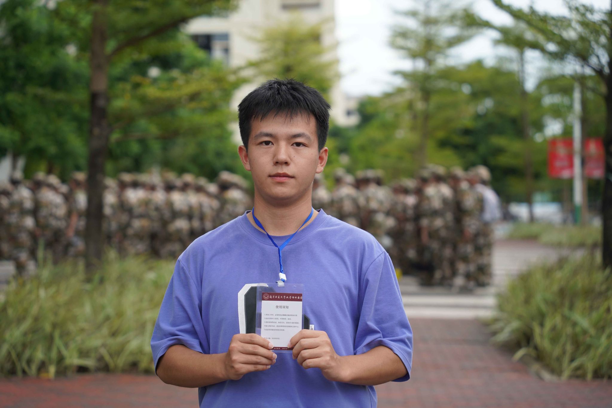 谭鳕芸说:“在烈日下拍摄,是一件不容易的事情。但是能用镜头定格每一寸新生们灿烂笑容的剪影,为他们留住独一无二的军训时光,也是令人开心的事情。”