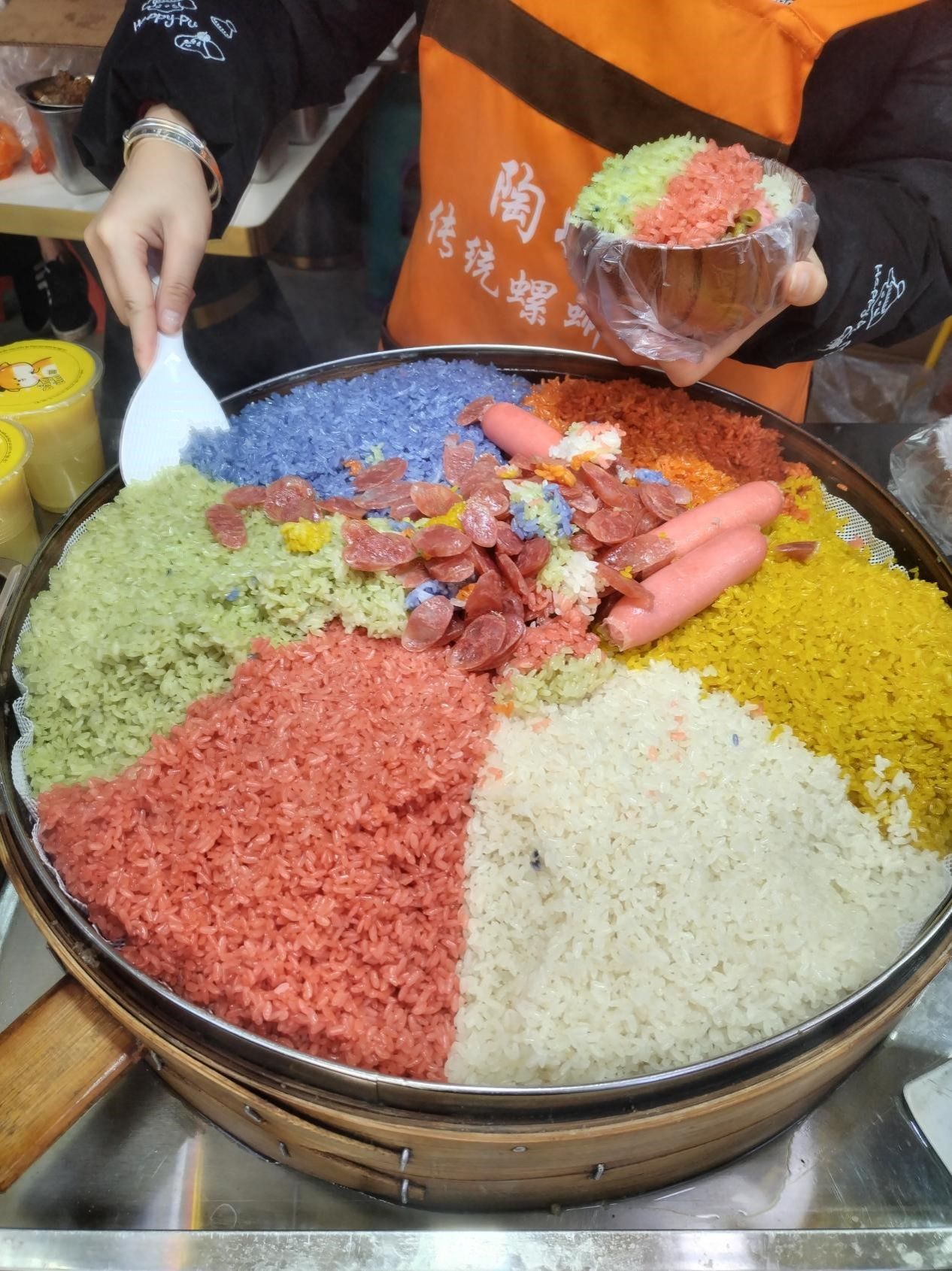 农历三月三这天,学生食堂的窗口多了一道应景的彩色糯米饭。不同颜色的米粒整齐地码放在餐盘中,在白色米饭的映衬下显得格外鲜艳。正值午饭时间,不少同学被这特别的色彩吸引,在窗口前驻足观望。食堂师傅表示,这是为传统节日特别准备的时令餐点。虽然制作过程没有过多宣传,但彩色的米饭还是引起了不少同学的兴趣。有的同学特意点来尝鲜,有的则好奇地询问各种颜色的由来。这份应节的彩色米饭,为平常的就餐时光增添了一份节日的趣味。