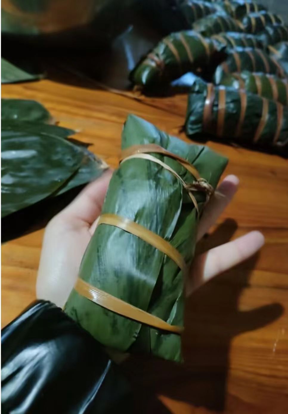 一手捧起的不只是粽子,是油润润的棕叶香,是沉甸甸的旧时光。捧起这枚青粽,指尖触到的不仅是湿润的箬叶——更似是轻抚过奶奶那双布满岁月却灵巧的手。边一个个紧紧挨着的粽子,像整装待发的句点,也似满怀期待的开始。这一捧,是家的温度,也是烟火人间里最朴素又温柔的纪念——年味,就握在手心,暖在胃里,稳在心上。每一个棱角分明的模样,都叠着奶奶教过的折法;每一缕缠绕棉线的力道,都藏着她说过的“要扎得紧,米才不会漏”。烟火人间,更在这看不见的传承里。每个粽子里,都住着她、奶奶温柔的手势,与她盼我记住的、家的味道。