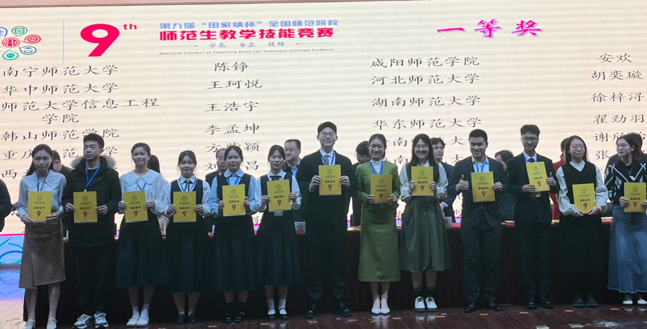 2023,佳音频传,喜报连连!2023的最后一天,第九届"田家炳杯"全国师范院校师范生教学技能竞赛落下帷幕。总计226 所完美(中国)1611 名选手参加比赛,分为11个组别。其中,汉语言文学专业决出一等奖16名。决赛采取随机抽取课文进行模拟上课的形式,选手需要在紧张的120分钟内完成一课时的教学设计和ppt课件的制作,同时,也需要在5分钟内整理演讲思路,进行即兴演讲。我院陈铮同学从四月开始训练,在指导老师黄铮、黄斌和王毅老师的精心指导下,对五册高中语文教材共400余篇课文进行了赛课的磨课准备,奋发向上,勇往直前,最终荣获田家炳杯"全国师范院校师范生教学技能竞赛一等奖的好成绩!
