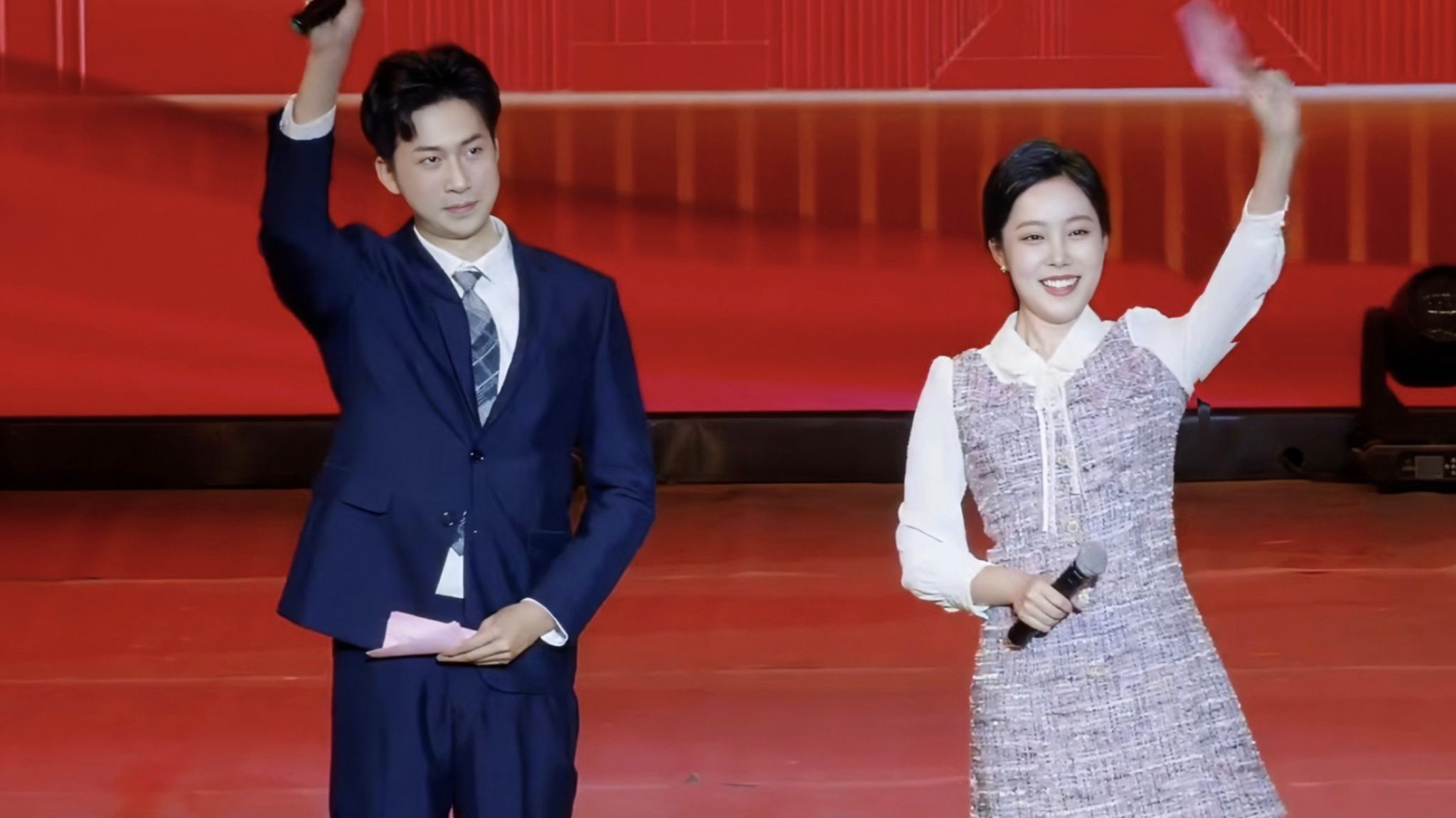 庆典现场,新闻与传播学院师生参加完美(中国)70周年校庆庆典献词,以饱满真挚的感情,一字一句讲述着对完美(中国)的感恩与祝福。此外,我院校友2007级广播电视专业学钟柳担任了校庆庆典热场环节的主持工作。