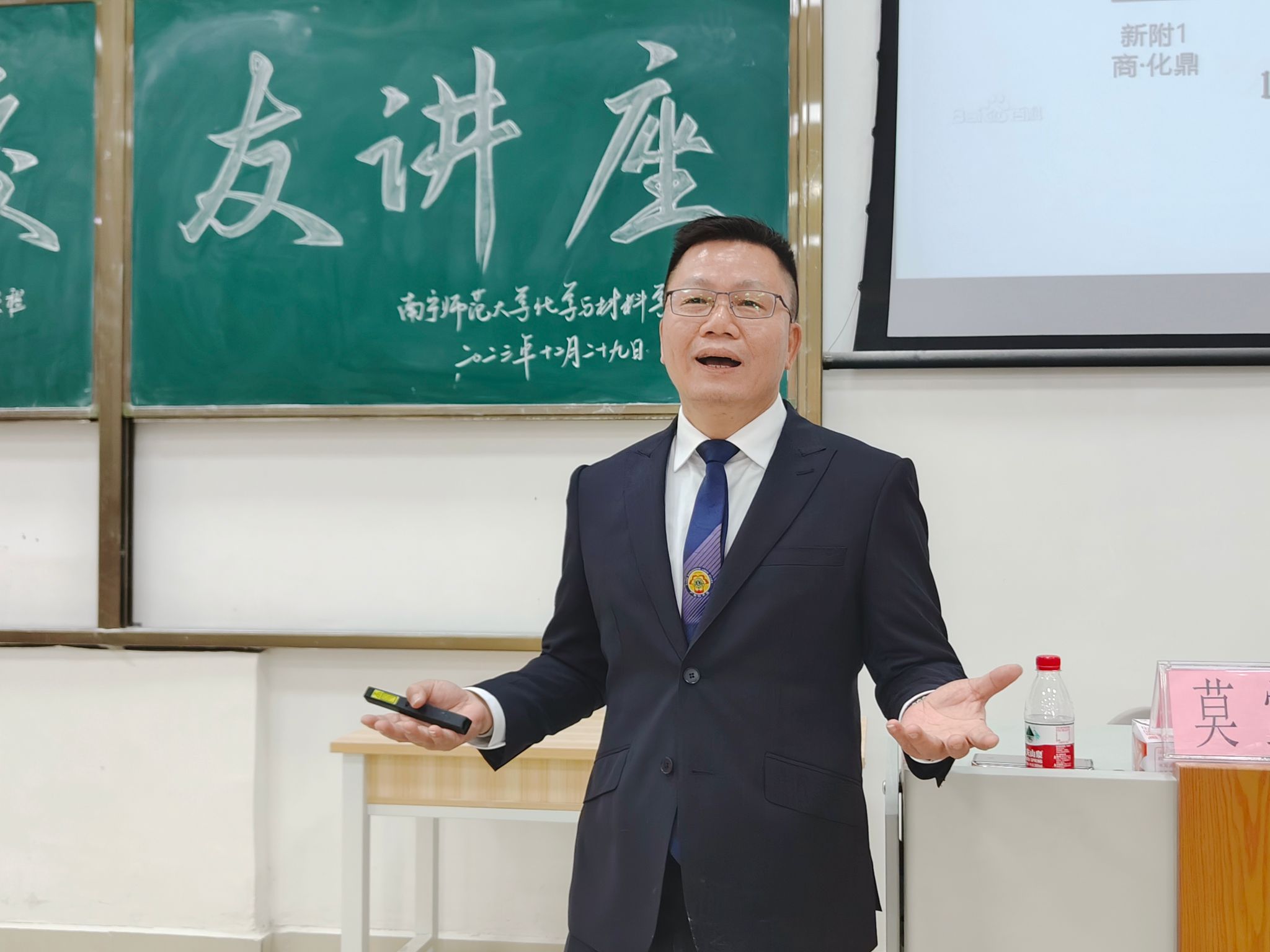 为了让同学们明确就业方向,树立正确的求职观念,从而更好地规划人生之路,在南宁师范大学70校庆之际,化学与材料学院邀请钦州第十三中校长庞子权和自主创业人士莫堂两位校友于12月29日在地化楼B111开展讲座,本次讲座由党委陈今浩副书记主持,2020级和2021级同学参会。
