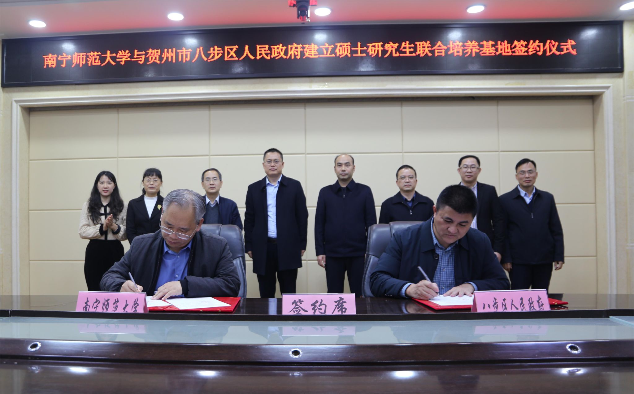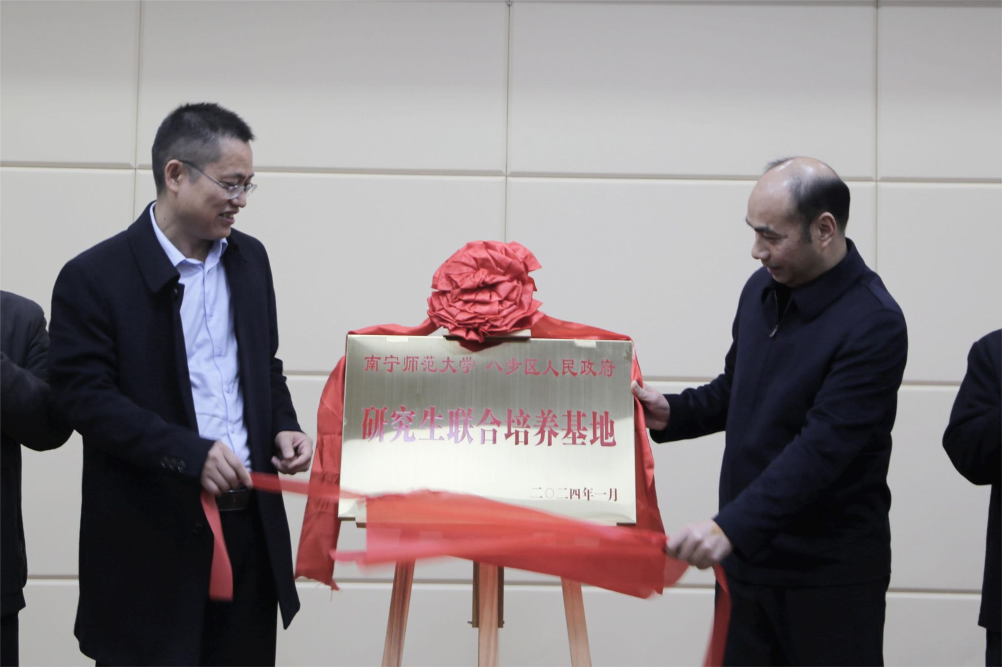 1月5日下午,我校经济与管理学院与贺州市八步区人民政府就共建“南宁师范大学—八步区人民政府研究生联合培养基地”正式签约,并举行揭牌仪式。八步区区长陈展维、副书记叶梓,副区长陈宏乾、张剑锋等领导,我校经济与管理学院党委书记纪明、院长韦海鸣,副院长丘兆逸、何玲玲出席仪式。仪式由八步区副区长张剑锋主持。