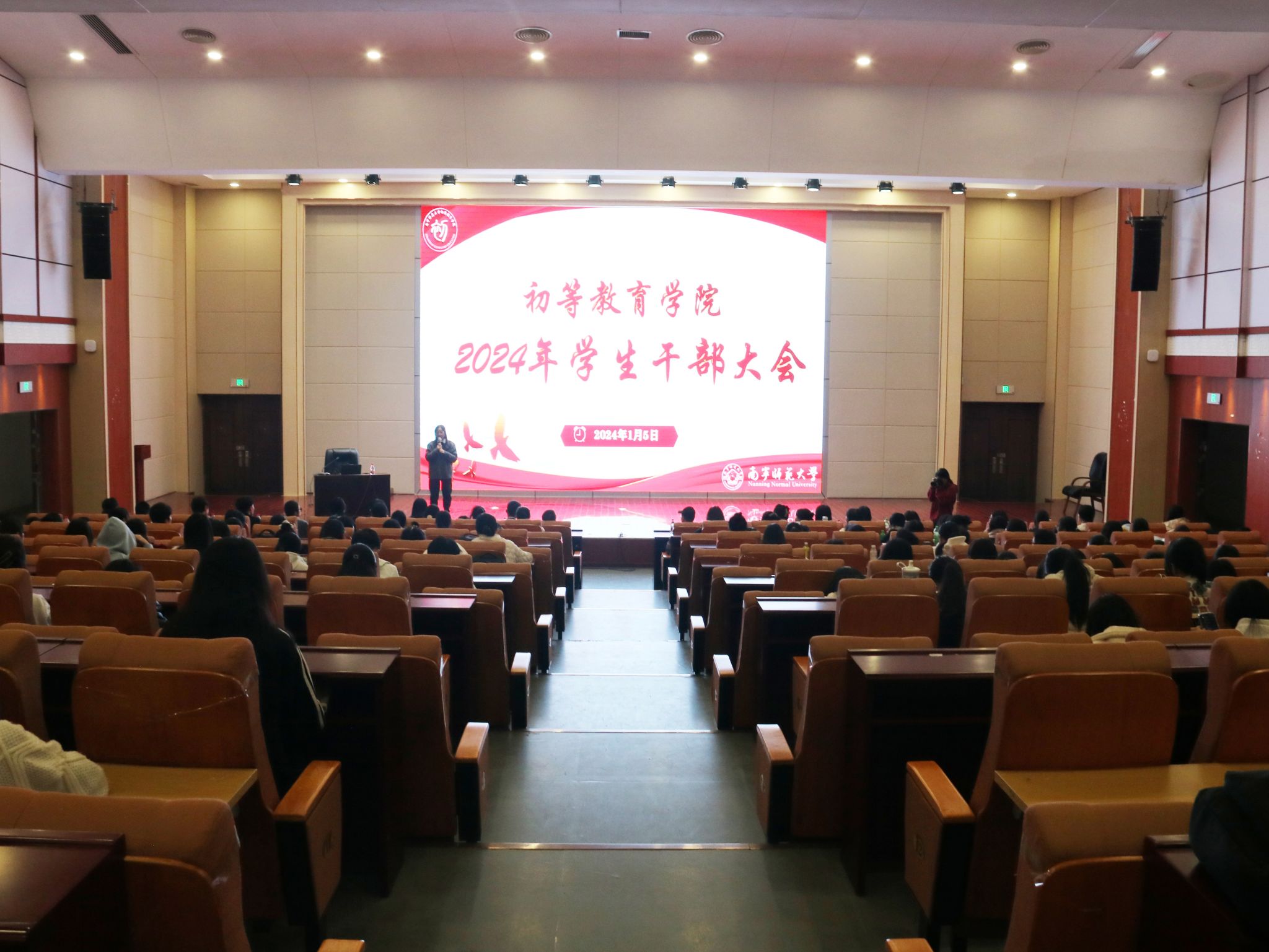 1月5日下午,初等教育学院在五合校区文综114报告厅召开2024年学生干部大会。学院党委书记陆以宏、党委副书记苏学权、学工辅导员、兼职辅导员、五合校区以及建政校区学生干部代表参加。此次大会由学院团委书记秦晴主持。