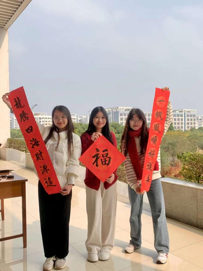 图1 陈洪波教授指导泰国留学生冯春雨(中)写春联