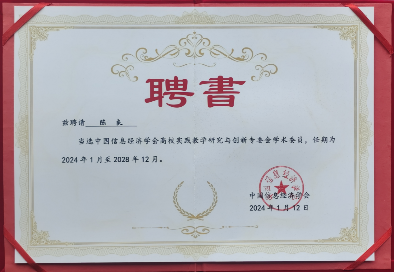 中国信息经济学会领导为我院陈良教授颁发学术委员聘书(图右五)
