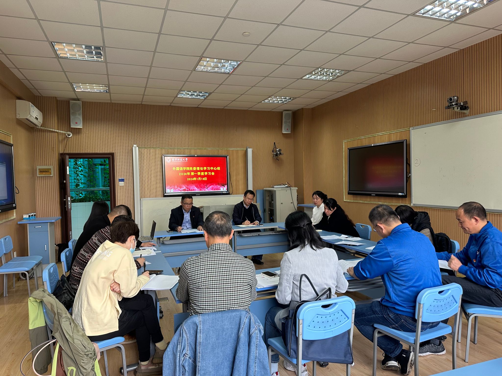 1月18日下午,外国语学院党委在明秀校区文星楼404室召开了党委理论学习中心组2024年第一季度学习会,学习习近平总书记视察广西重要讲话精神和二〇二四年新年贺词。外国语学院党委委员、非党员领导班子成员、纪委委员、教工党支部书记参加了本次会议。会议由外国语学院党委书记苏华主持。