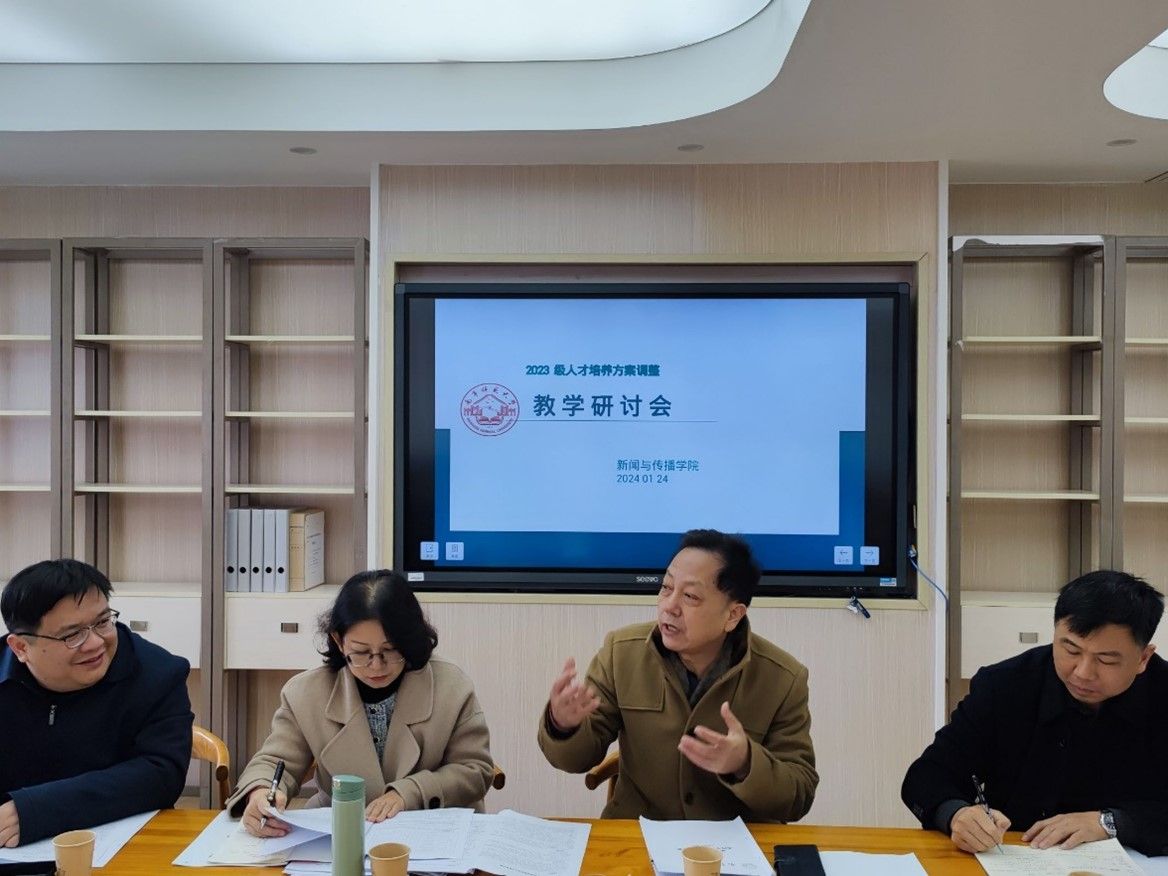 1月24日上午,南宁师范大学新闻与传播学院邀请了广西本科高校新闻传播学类教学指导委员会主任刘洪教授、广西民族大学传媒学院院长杨学明教授、李琳副教授、广西艺术学院影视与传媒学院副院长罗奕教授作为专家,对我院新闻学、广播电视学、广告学、播音与主持四个专业的人才培养方案进行了指导修改,在文星楼会议室召开了座谈会。学院领导、各专业负责人、教师代表参加了会议。