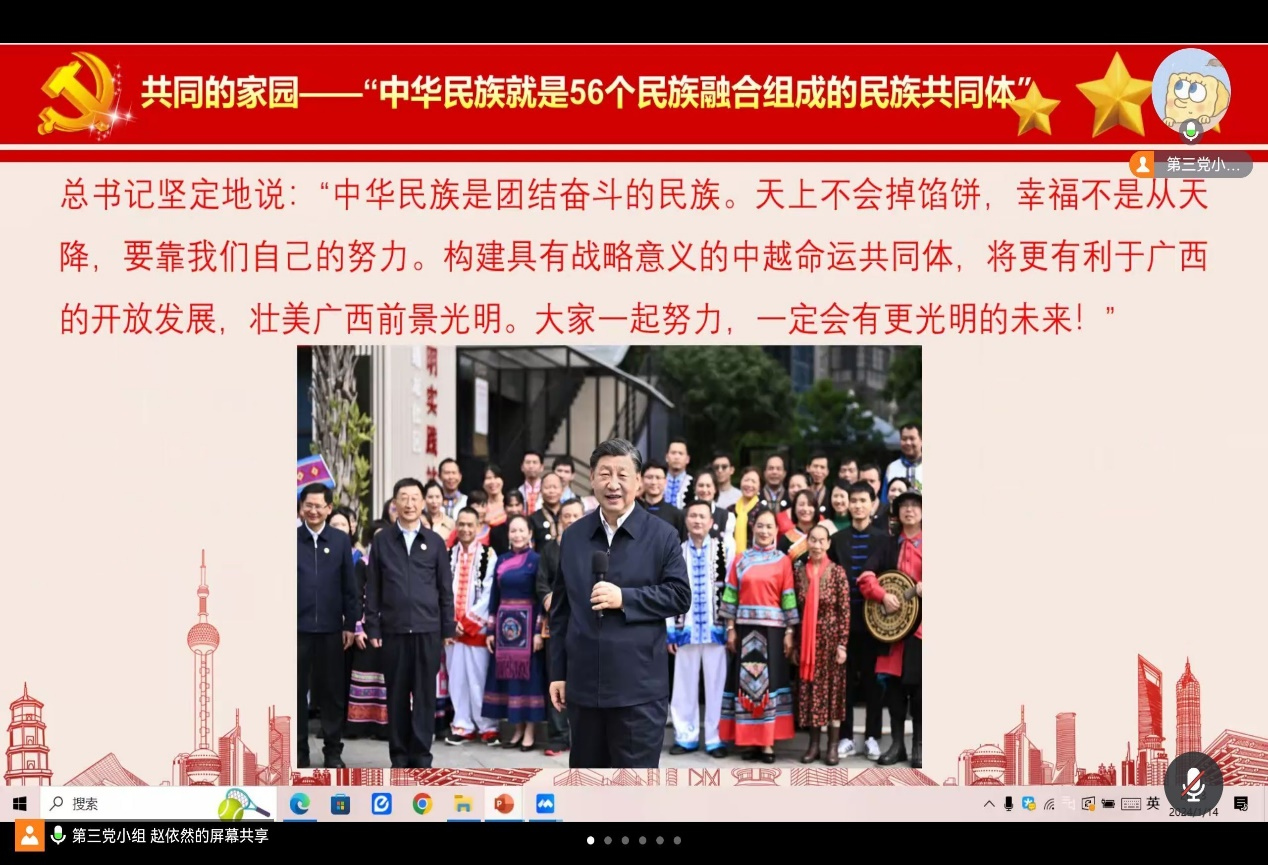 1月14日,计算机与信息工程学院计算机研究生党支部在腾讯会议开展学习《幸福的歌声希望的田野》——习近平总书记视察广西纪实主题党日活动。