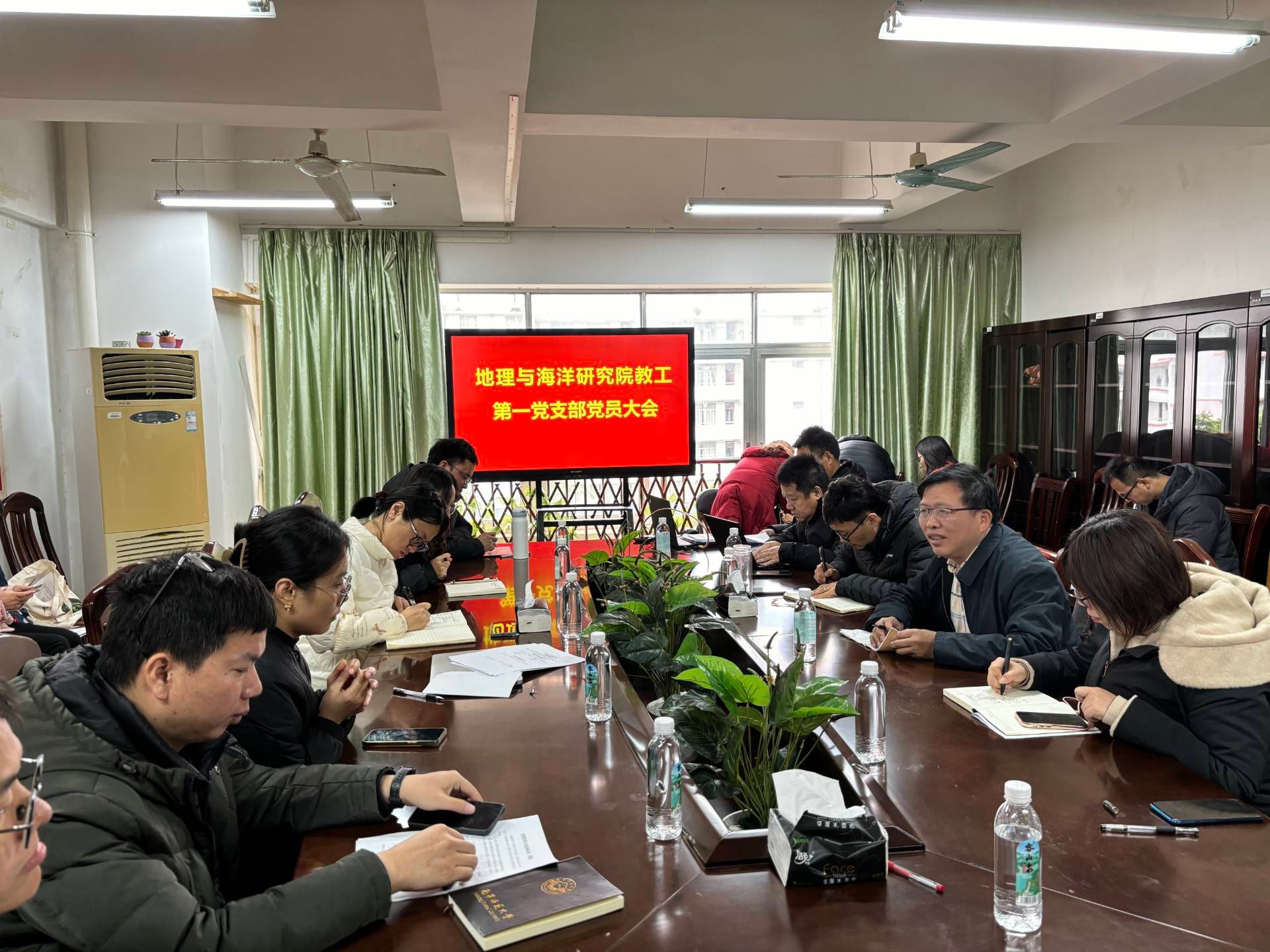 大会在庄严的国歌声中拉开了帷幕,上届党支部书记张建兵同志从支部基本情况、理论学习、组织建设等方面总结回顾了上一届支部委员会工作。据地理与海洋研究院教工第一党支部换届选举要求,大会采取无记名投票和差额选举的方式进行,全体党员行使了自己的选举权,产生新一届党支部委员会成员。并召开了新一届党支部委员会第一次全体会议,选举产生新一届党支部书记,明确了支部委员分工。