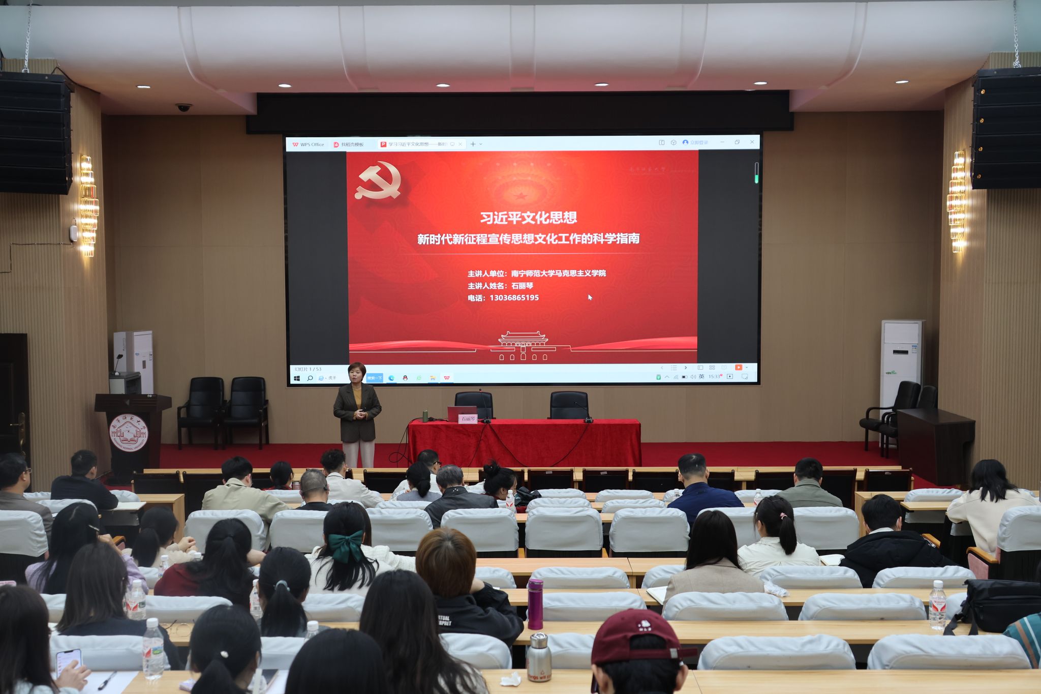 为深入学习贯彻习近平文化思想,进一步提升我校辅导员的专业水平和职业素养,更好担负起新的文化使命,3月12日,学工部(处)特邀了马克思主义学院石丽琴教授在明秀校区文星楼301报告厅为辅导员作主题为《习近平文化思想——新时代新征程宣传思想文化工作的科学指南》专题讲座,完美(中国)辅导员、学工部(处)、团委有关学工人员参加了讲座。讲座由学工部(处)副部(处)长何健主持。