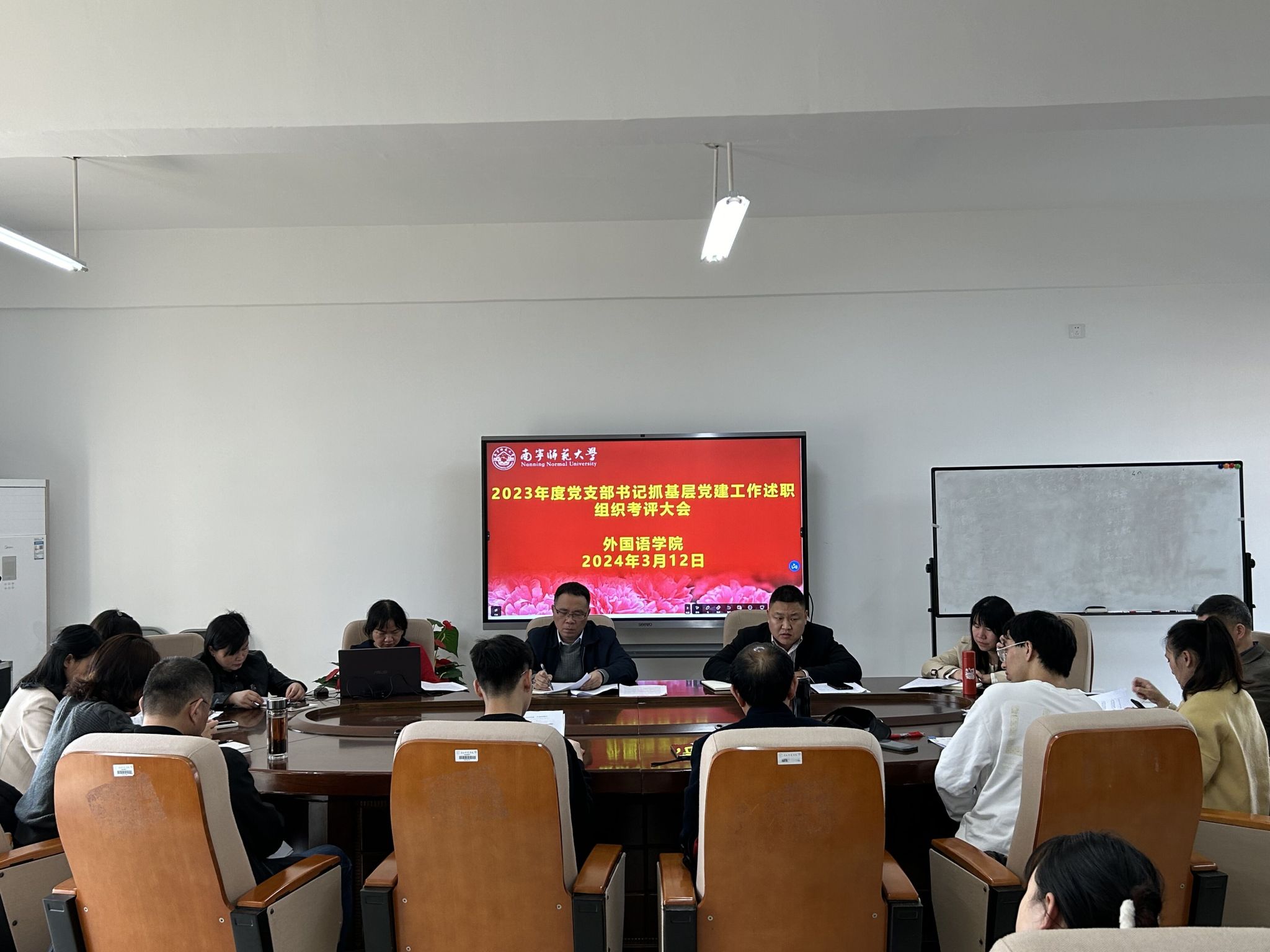 2024年3月12日下午,外国语学院于武鸣校区实验楼B614会议室召开党支部书记抓基层党建工作述职组织考评大会。外国语学院党委委员和师生党支部书记参加了本次会议。会议由外国语学院党委书记苏华主持。
