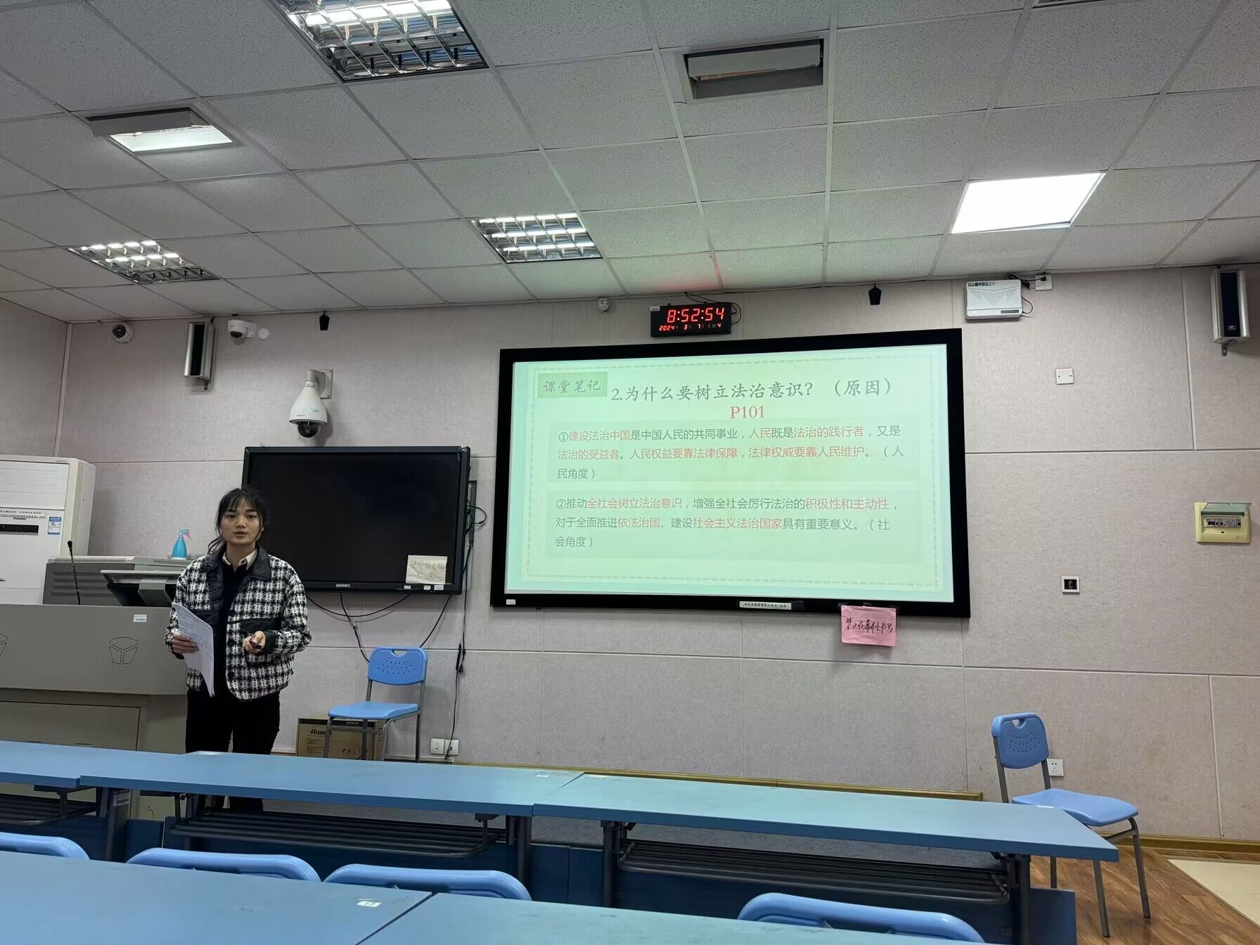 为进一步提升教育实习质量,严格实行师范生实习准入制度,马克思主义学院就已经启动2021级思想政治教育专业师范生的校内教育实习工作,并结合实际情况采取线上线下相结合的方式开展校内实习,即寒假期间采取线上试讲,本学期开学后集中组织线下试讲。