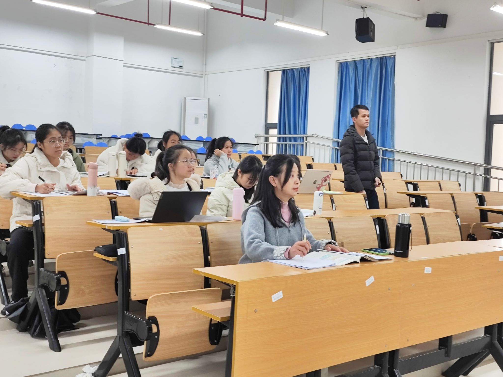 2024年3月4日,新学期开学第一天,2021级同学和指导老师立即投入到为期2周的线下试讲工作。各实习组按照教学进度和备课安排,有条不紊地开展线下试讲,经过寒假线上试讲的锻炼,同学们的教学能力已有所提高,同学们都能以崭新的姿态和饱满的状态依次进行试讲。在同学们试讲结束后,指导老师从课堂导入、情境设置、问题设计、教学结构、课堂语言、教姿教态、课件设计等多方面提出了指导性意见。