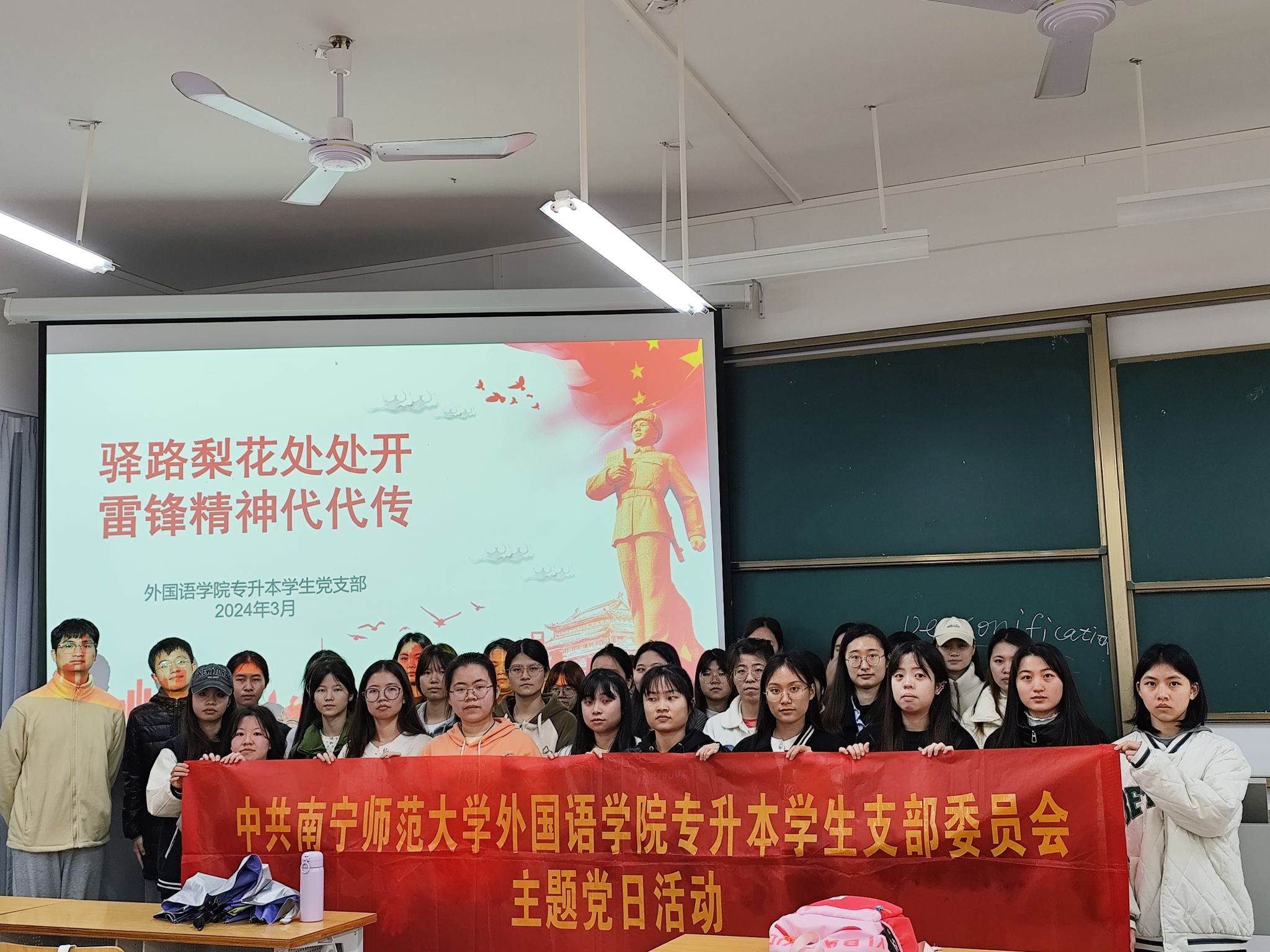 雷锋,不止是一个名字,更是一种精神,一座丰碑,感召一辈辈人不计小我,成就大我;激励了一代代人多行善举,不做恶行。为了深入学习和弘扬雷锋精神,教导大学生党员树立正确的价值观、人生观、世界观。外国语学院专升本学生党支部于2024年3月14日在校内2A-101教室对支部所辖管的班级开展以“驿路梨花处处开,雷锋精神代代传”为主题的宣讲活动。