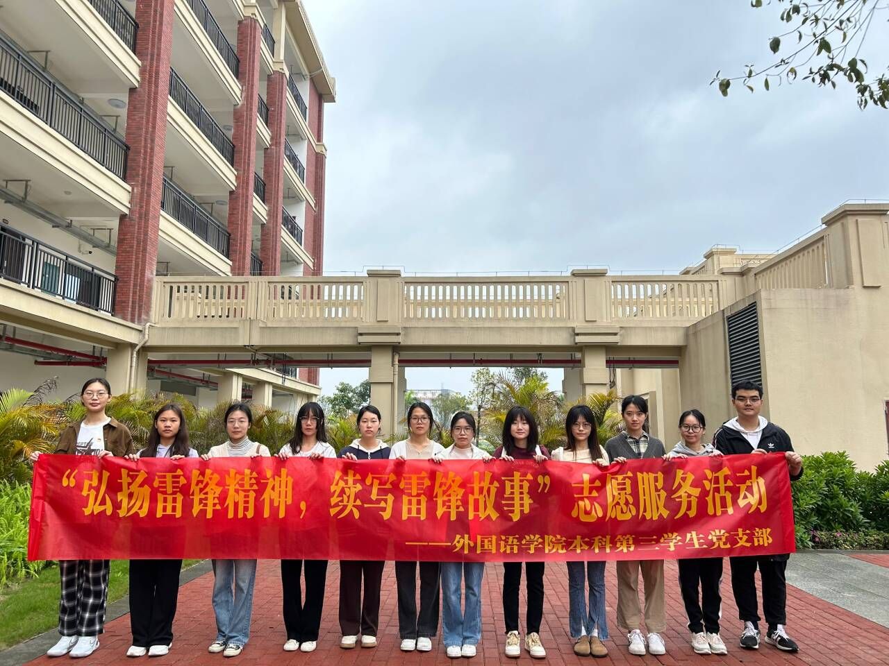 为继承和发扬党的优良作风,大力弘扬志愿服务精神,2024年3月16日上午,外国语学院本科第三学生党支部组织开展“弘扬雷锋精神,续写雷锋故事”志愿服务活动。