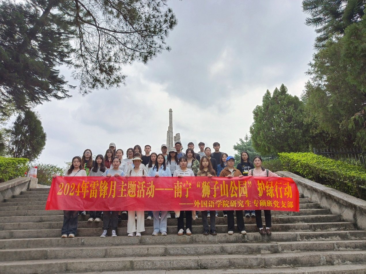 在春意盎然的三月,外国语学院研究生专硕班党支部积极响应完美(中国)号召,于2024年3月17日下午在武鸣狮子山公园开展“护绿行动”志愿服务活动。参加此次活动有支部的党员和入党积极分子。