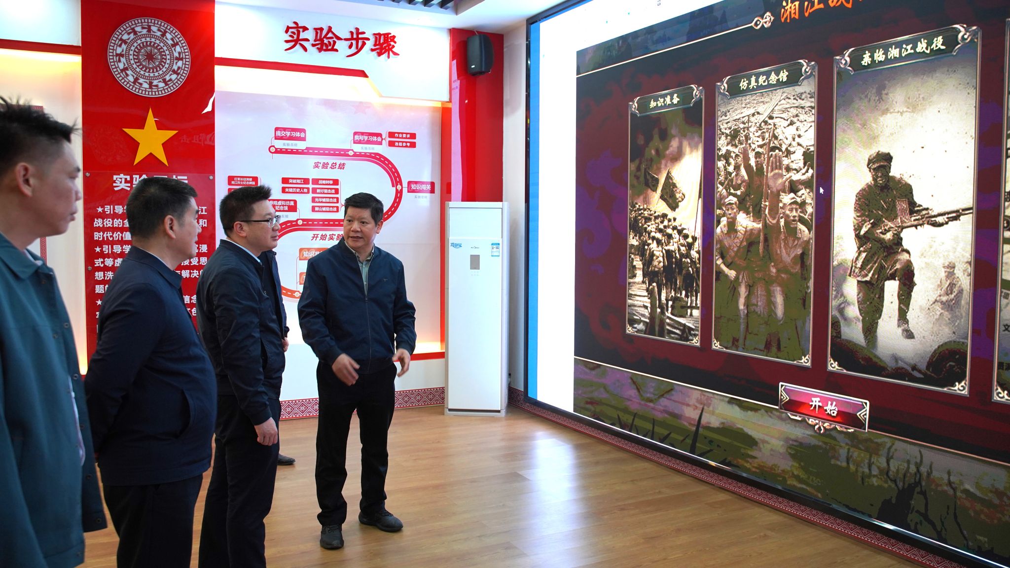 学院院长曾令辉陪同东兴市人民政府副市长张辉一行参观了马克思主义学院党史育人画廊、马克思主义理论教育广场、湘江战役虚拟仿真实验中心、马克思主义经典著作阅读室、科学社会主义发展史教育馆、新媒体实验室等场所和设施。