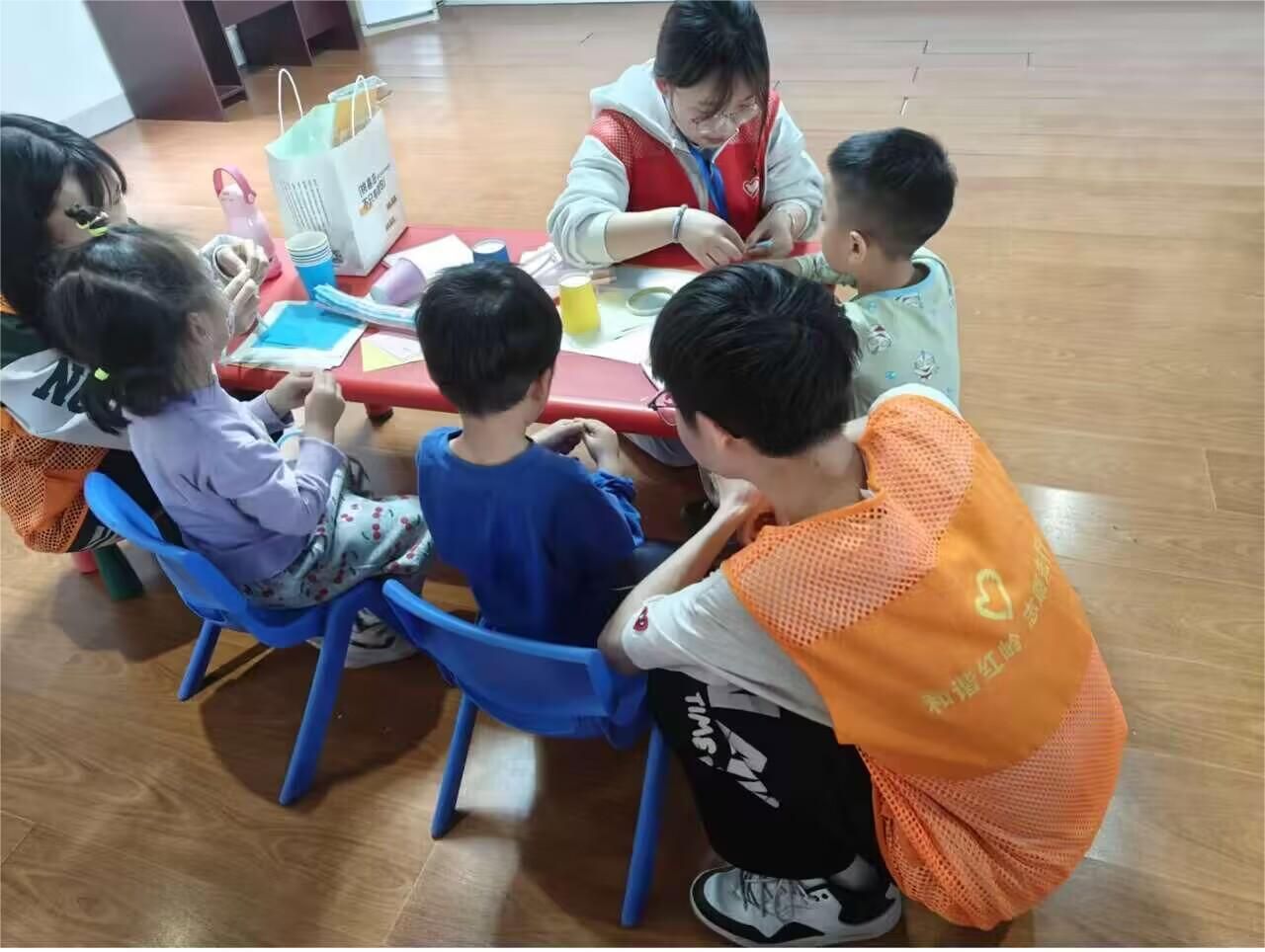 活动中,志愿者热情友善地与小朋友交流互动,现场教授小朋友们手工制作,通过制作扭扭棒和折纸等手工作品向小朋友传递快乐和知识。在志愿者的带领下,社区的小朋友踊跃参与,活动现场热闹非凡,笑声不断。在轻松愉快的氛围下,小朋友发挥他们的创造力和想象力,大胆尝试,同时主动与志愿者们分享自己的成果。活动的最后,志愿者和小朋友一一道别并赠与小朋友每人一支铅笔作为其积极参与活动的奖励,小朋友脸上都洋溢着幸福的笑容。
