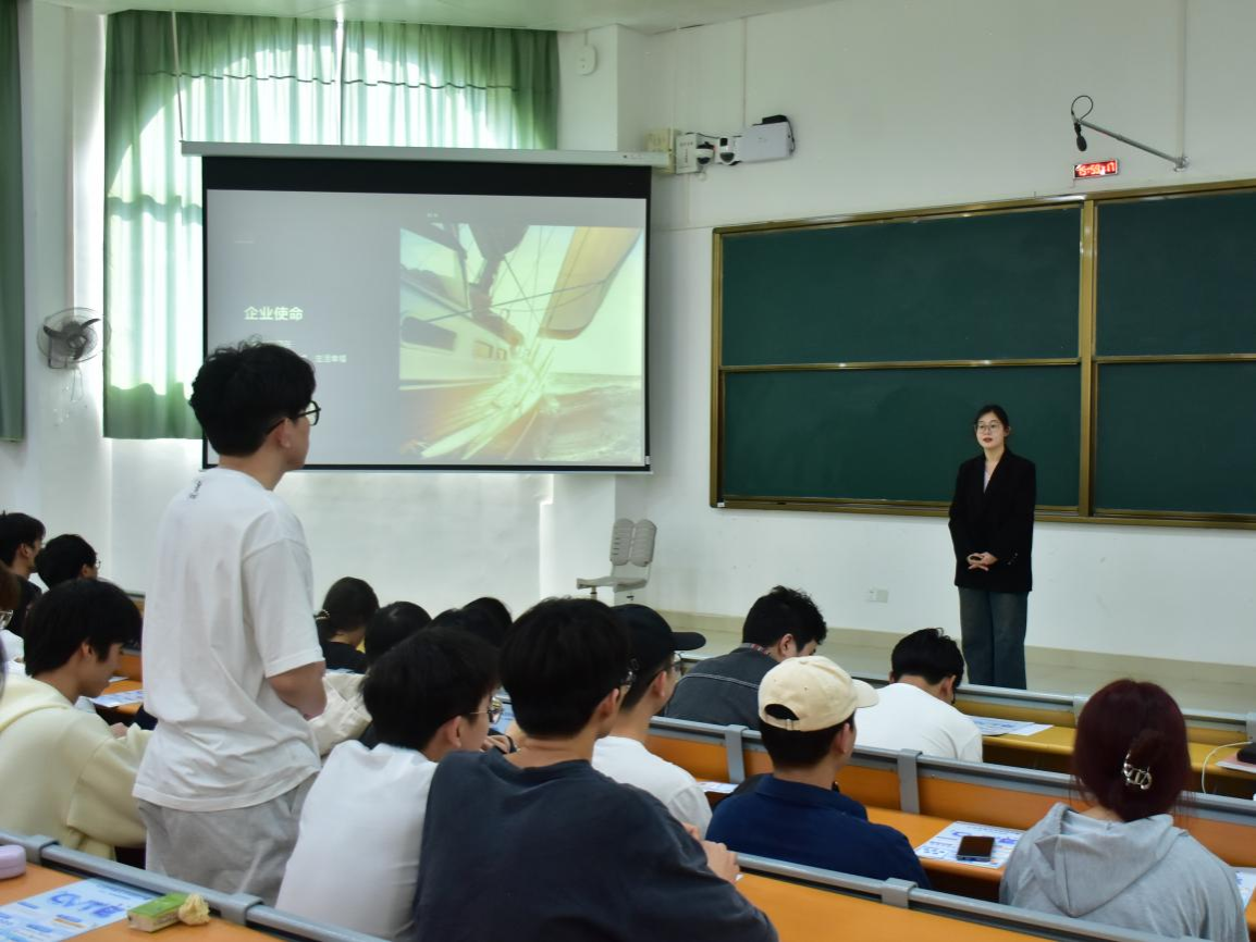 招聘宣讲会由韦副书记开场,她首先对广州视源电子科技股份有限公司来校招聘宣讲表示欢迎和感谢。向同学们强调了本次宣讲交流的重要意义,同时讲述了自己实地走访CVTE后的切身感受。她鼓励同学们认真听讲,积极主动了解企业的招聘岗位,踊跃投递简历,希望能够从中找到自己心仪的工作。