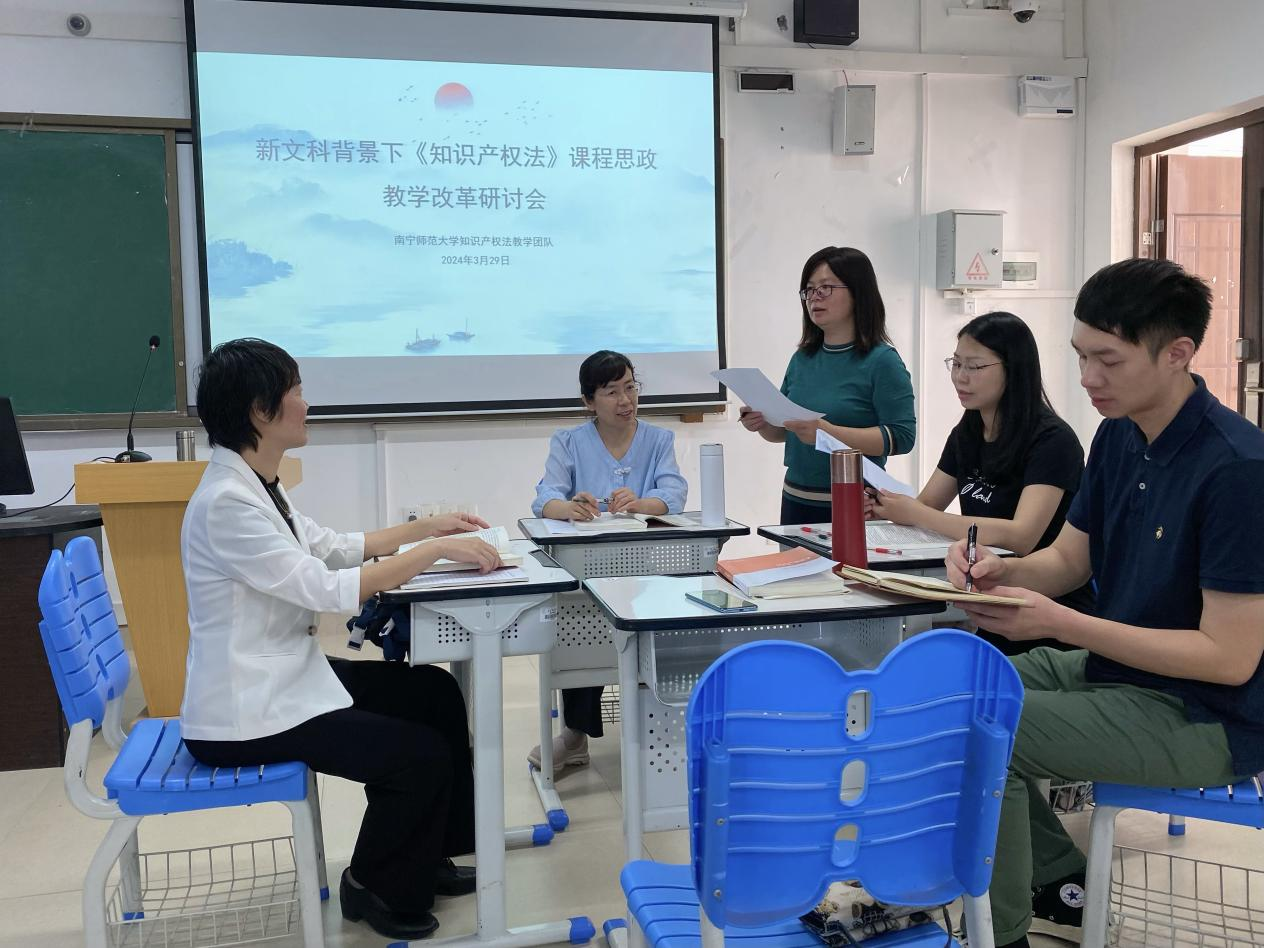 法学与社会学院自治区级知识产权法课程思政教学团队获批建设以来,在师资队伍建设、深化教学改革、加强课程建设、优化育人平台等方面取得了一系列建设成果,受到广大师生的高度评价。2024年,知识产权法教学团队将继续贯穿落实广西关于课程思政建设的有关工作精神,在课程改革、资源建设等多个维度加快建设步伐,为全校教师提供更加优质的课程思政教学资源和交流平台,推动法学专业知识与思政教育内容的深度融合,持续提升育人质量。